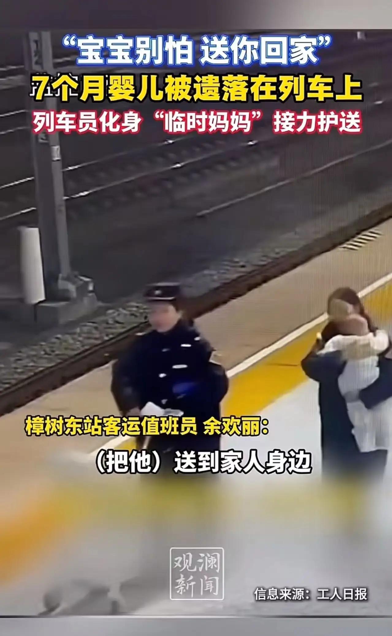 全网最粗心的妈妈!江西icon,宝妈下车时,脑袋一抽,将七个月大的婴儿遗落在列车上!列车员发现后,又震惊又紧张,立马化身“临时妈妈”接力护送。网友:行李丢了能理解,这么小的孩子不得一直在手里抱着吗?能丢?这不仅仅是一场疏忽,更像是一场对责任与爱的深刻反思。 事情发生在一个平凡的早晨,宝妈匆匆忙忙赶着去工作,车站人声鼎沸,她的心里满是琐碎的事情。或许她以为,孩子在推车里,或者在她的视线范围内,自己一转身就能找到。谁曾想,就在那短短的几秒钟里,命运的齿轮就悄然转动了。 这七个月大的宝宝,天真无邪,像一只小天使,安静地躺在推车里,等待着母亲的怀抱。列车员在发现婴儿时,心里那一瞬间的震惊难以言喻。他们迅速反应,第一时间用手机联系车站,通知家长,同时自己也变身“临时妈妈”,用温暖的双手守护着这个无助的小生命。 这场意外,瞬间引发了网友们的热议。有的人愤怒:“这么大的人,居然会忽略自己最重要的责任?孩子的生命不能用一时的疏忽来衡量!”有的人则感叹:“每个母亲都不完美,但在关键时刻,责任心和爱心才是真正的考验。”更有人开始反思:我们是不是太习惯依赖“他人帮忙”或者“系统保障”,而忽略了最基本的责任感? 故事的高潮在于,列车员用细心和耐心,将宝宝安全送到车站等待家长。经过一番努力,家长匆匆赶到,看到孩子安然无恙,脸上的惊慌逐渐变成了羞愧与愧疚。这一刻,所有的责备与指责都变得微不足道,取而代之的是一份深深的反思——我们是否在生活的快节奏中,丧失了对责任的敏感?是否在追求效率的同时,忽略了最基本的爱与关怀? 这场意外,像一面镜子,映照出社会的某些“盲点”。也许,我们都曾在某个瞬间,像那位妈妈一样,心不在焉地忽略了身边最重要的人。而正是这些“疏忽”,让我们看到了人性中的缺陷,也提醒我们:责任,是每一个成年人应有的底线。 故事还在继续,未来会怎样?或许这位宝妈会变得更加细心,也许她会用行动告诉所有人:爱,不仅仅是言语,更是每天每一刻的用心守护。而我们,也该从这次事件中汲取教训,重新审视自己对责任的态度。毕竟,爱和责任,从来都不是一句空话,而是每个人心中那份永不褪色的信仰。 读完这个故事,你是不是也在心里默默问自己:在生活的点滴中,我是否也曾忽略了身边最重要的人?或许,是时候放慢脚步,用心去守护那份属于我们的责任与爱了。丢女婴