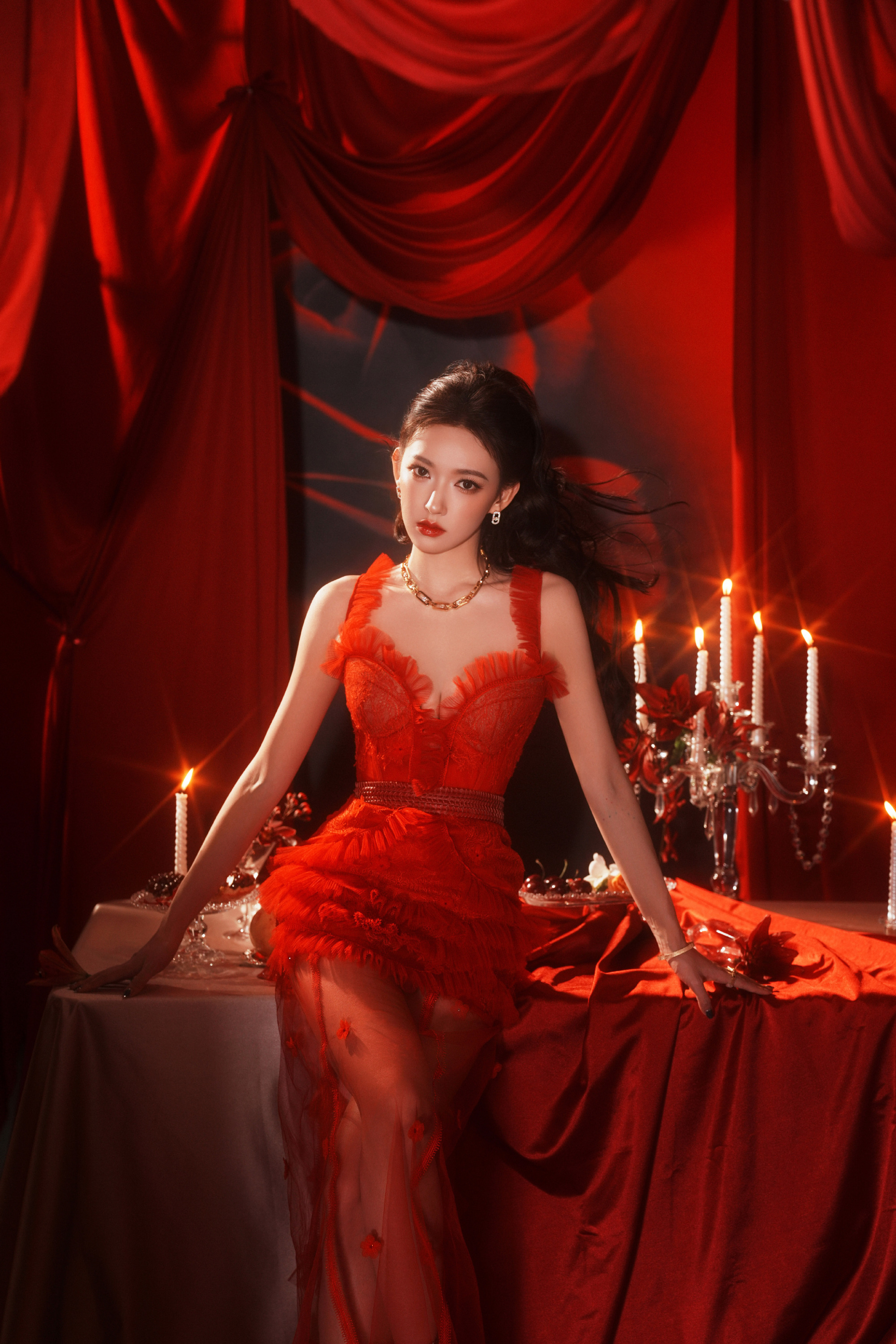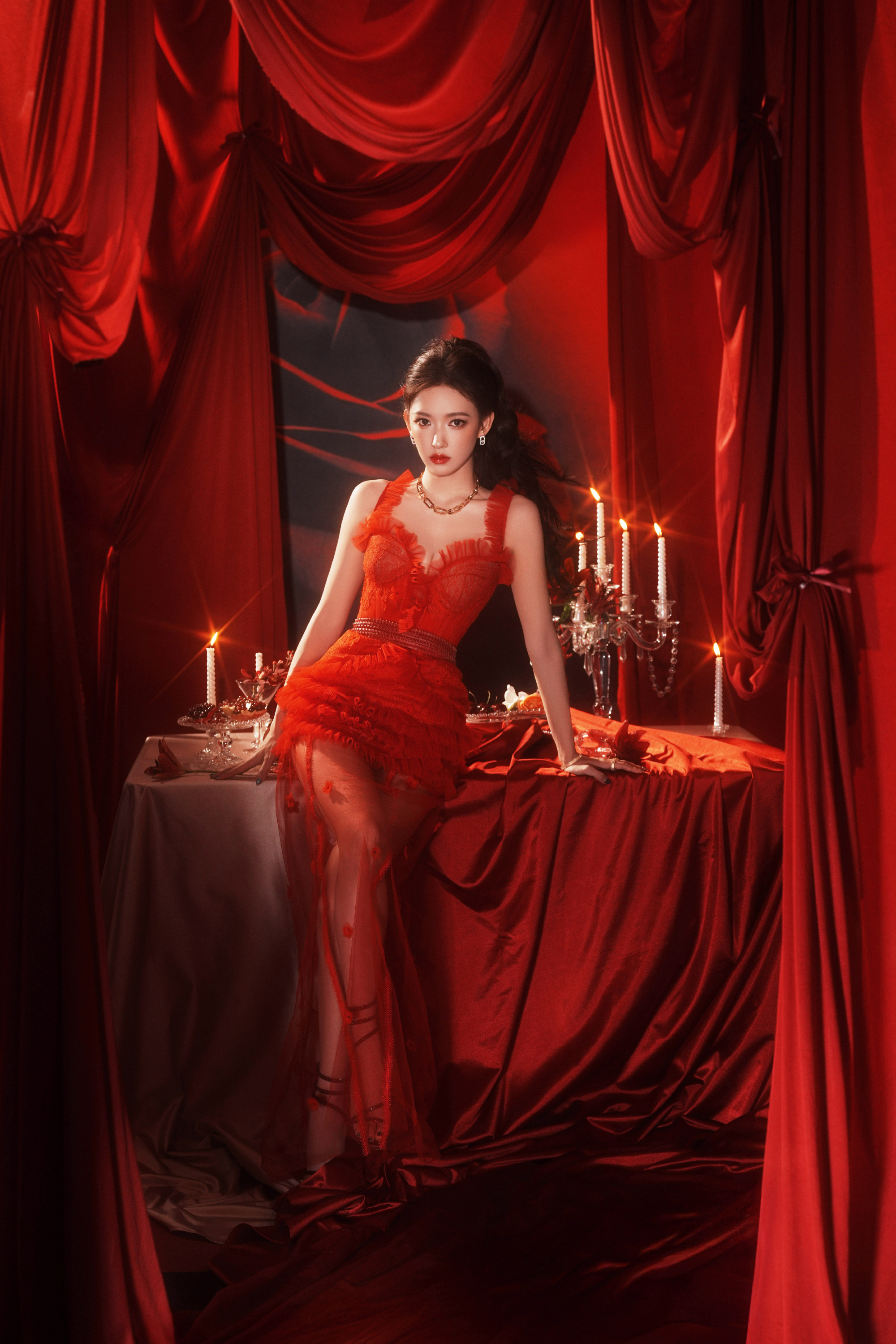 程潇礼服 ,火红热烈,优雅动人。程潇身材很曼妙
