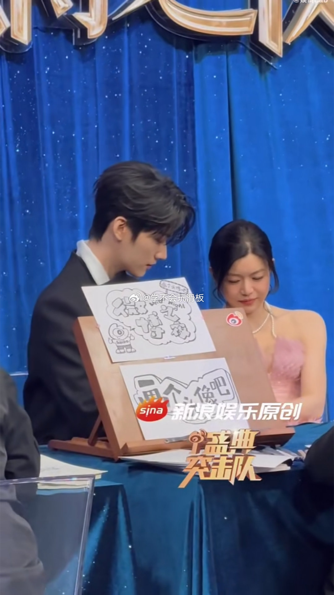 周柯宇陈妍希微博之夜后台互动 狙击蝴蝶售后真来了,周柯宇和陈妍希出席微博之夜红毯,两人一起入座画画,一起玩游戏,和对方分糖吃。