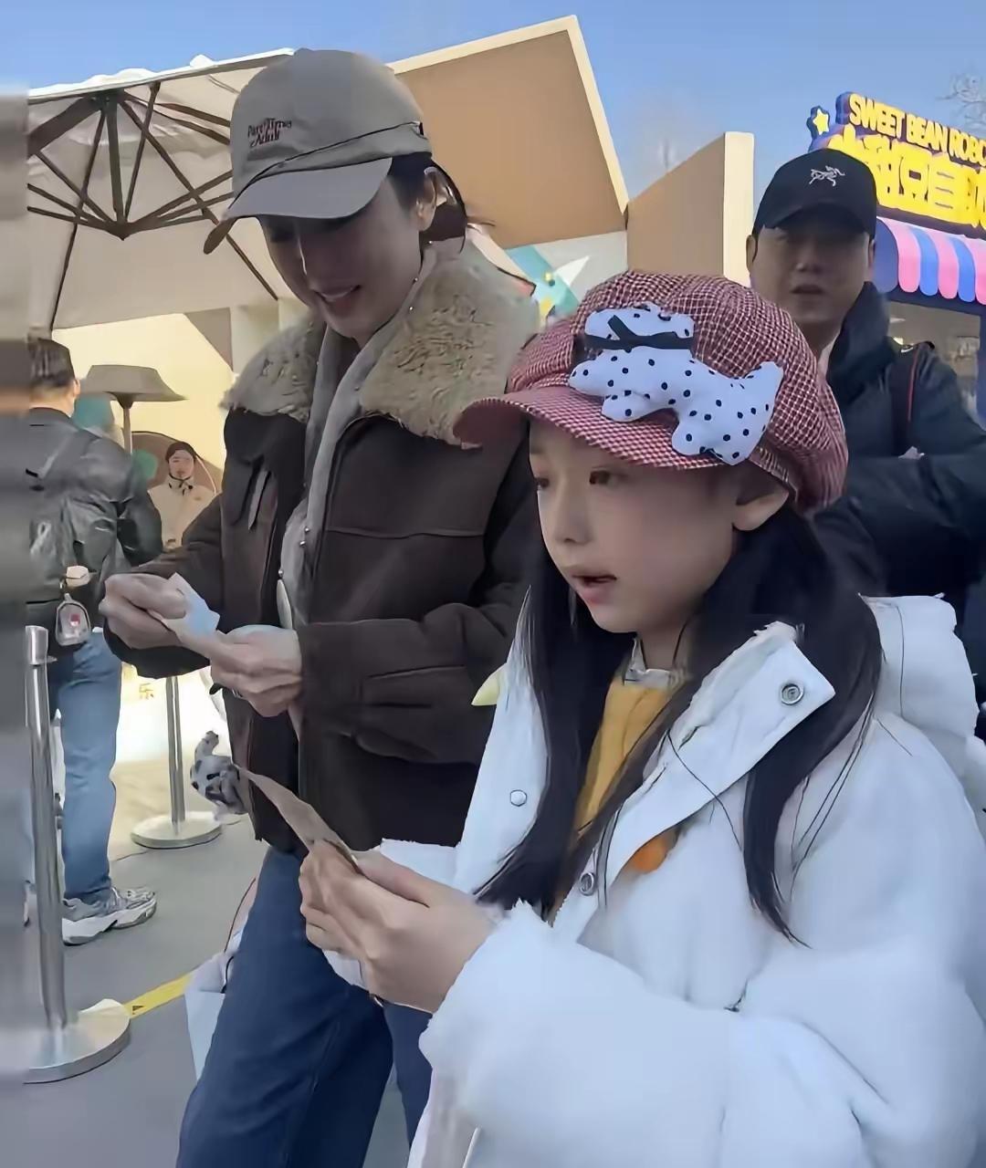 董璇小酒窝打卡北京游乐园,母女同框画面太养眼! 镜头下的董璇身穿深咖色外套,内搭驼色毛衣,头戴棒球帽,下身打扮蓝色牛仔裤,打扮得休闲随性。 小酒窝身穿白色羽绒服内搭黄色假两件卫衣,下搭配浅蓝色牛仔裤,可爱又秀气,母女二人与身边人偶合影,俏皮可爱,与路人热情合影,没有架子,值得点赞!