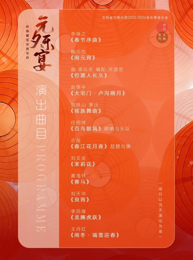3月3日晚,吉林省音乐厅举办“元夕乐宴”正月十五民族管弦乐音乐会,由吉林省交响乐团演绎,涵盖《春节序曲》《闹元宵》《赛马》《良宵》《瑶族舞曲》《百鸟朝凤》等经典曲目,其中《闹冬·瑞雪迎春》深挖东北文化底蕴,用激昂旋律展现关东大地新春欢腾景象。3月2日、4日晚,吉林省戏曲剧院京剧团将推出《2026丙午年·吉林省元宵节京剧晚会》,以“马”为核心意象打造五大主题板块,包含新编京剧器乐合奏《一马当先》、戏舞《万马奔腾》、红色经典选段、武戏绝技展演及名家献艺等环节,兼顾传统韵味与时代气息,为戏迷送上国粹盛宴。