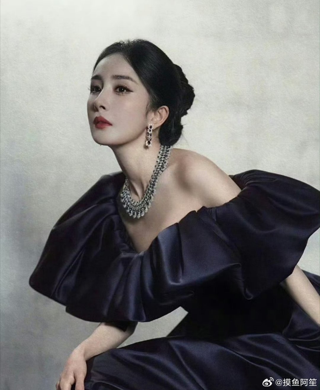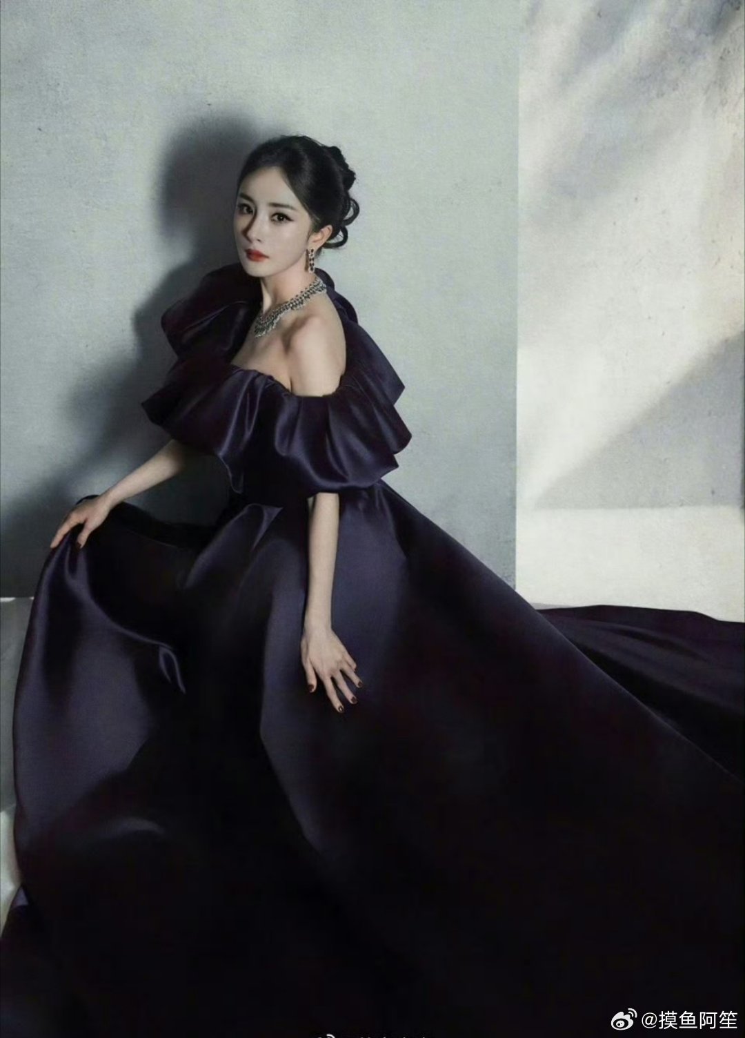 杨幂微博之夜出图,暗紫色大礼服,女帝今日来登基的微博之夜红毯