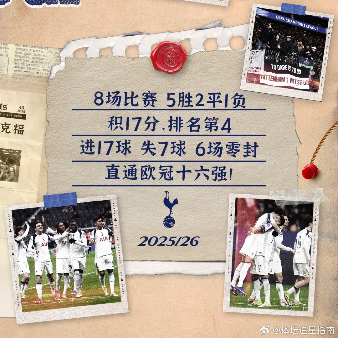 ⚔️8场比赛5胜2平1负🔢积17分,排名第4📊进17球失7球,实现6场零封💪直通欧冠十六强