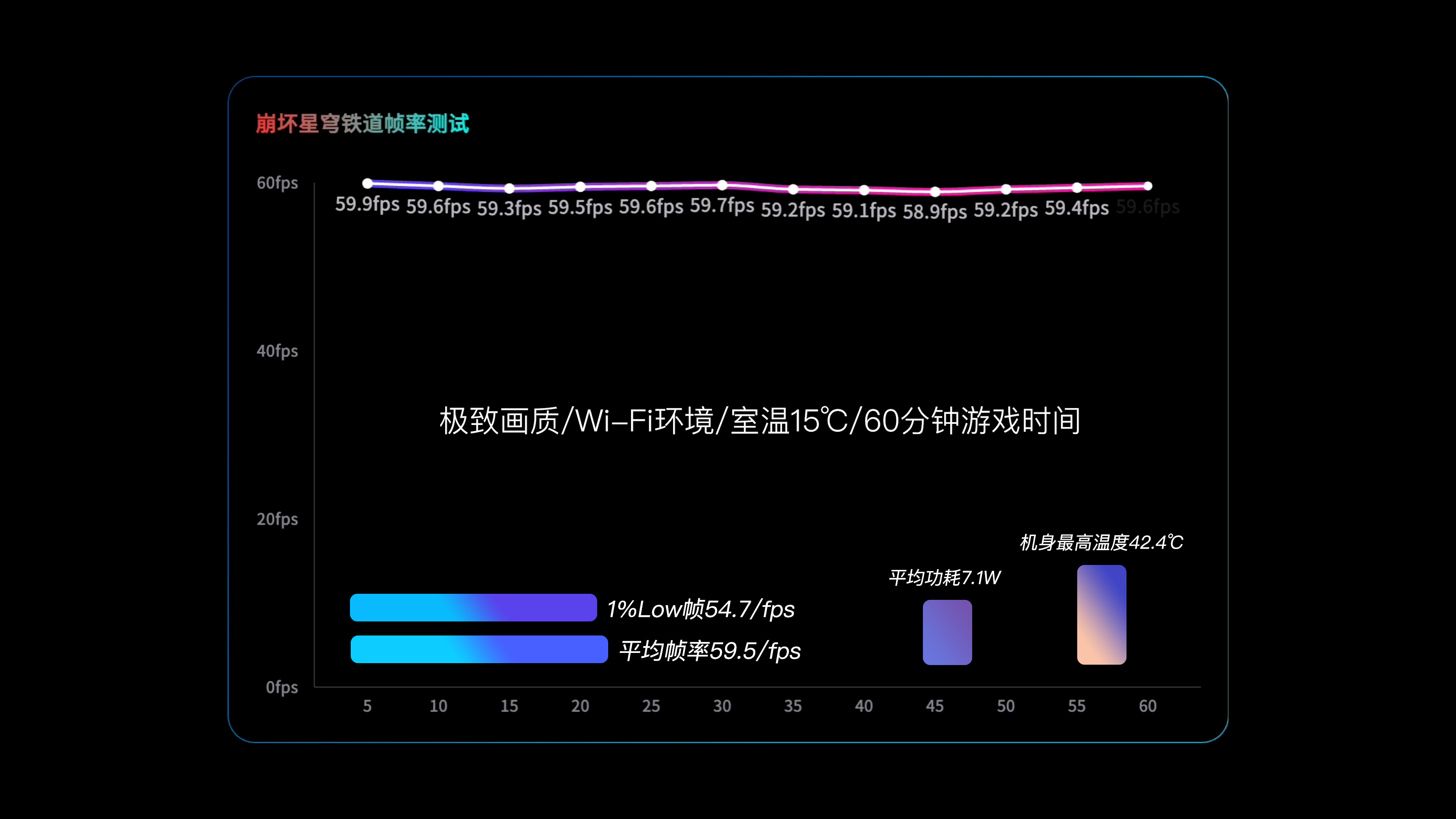 昨晚发布的的行业首款性能Ultra,iQOO15 Ultra到底性能调校得如何呢?在让很多手机感到“鸭梨山大”的星铁中,极致画质下平均帧率接近满帧已经很厉害了,但更惊喜的是,1% Low帧也能达到55帧的水平属实不简单,哪怕游戏时间增加帧率波动也是极小,要知道一般旗舰芯片的Ultra机型1%Low帧也就30-40左右,参考同级带主动散热风扇的性能旗舰,1%Low帧能冲到50帧就算好的,但iQOO15 Ultra对于性能的调校水平还是超出了预期,已然是性能赛道最强的机型。这也意味着不管是电竞体验还是用来直播,它都能满足用户需要。