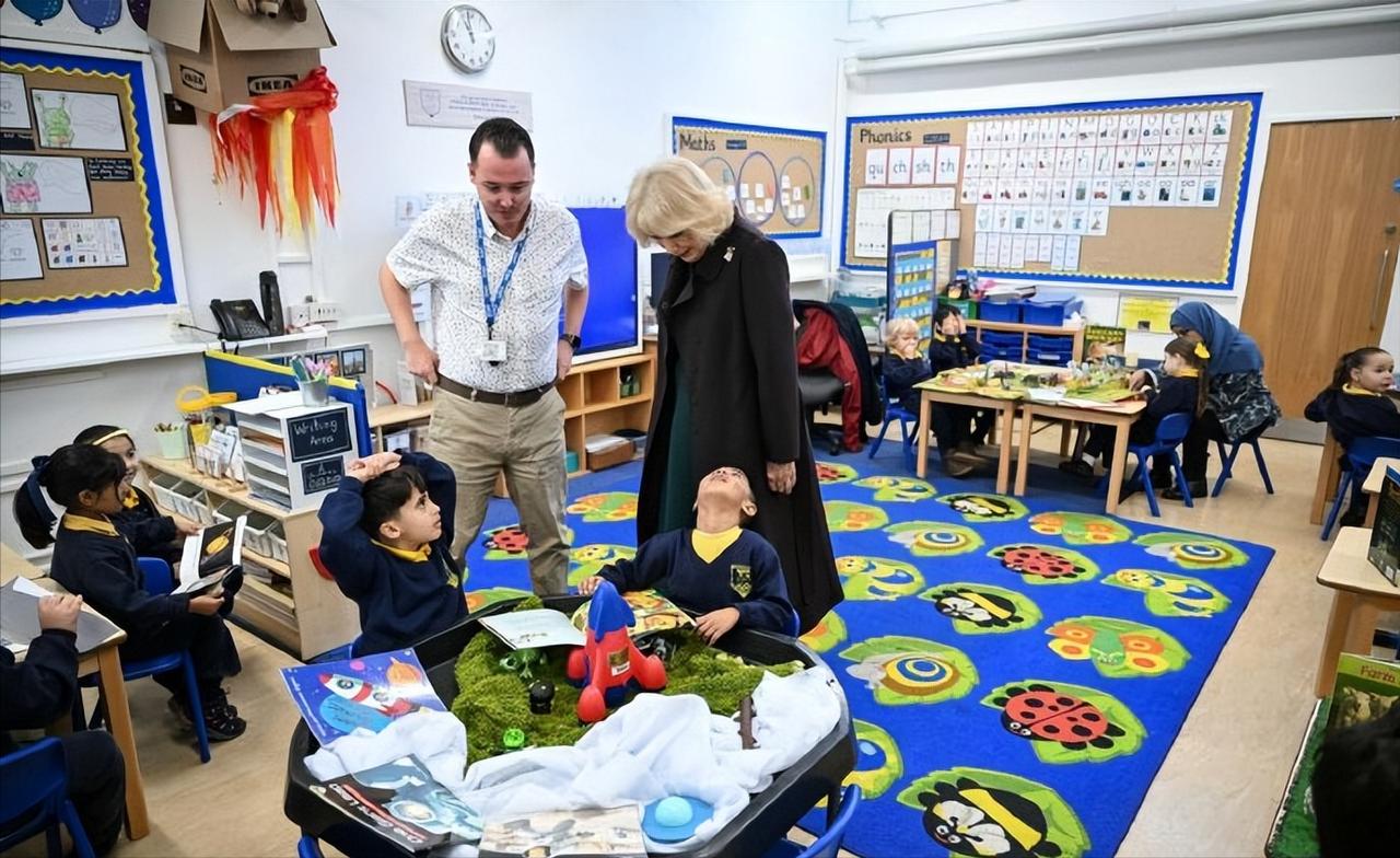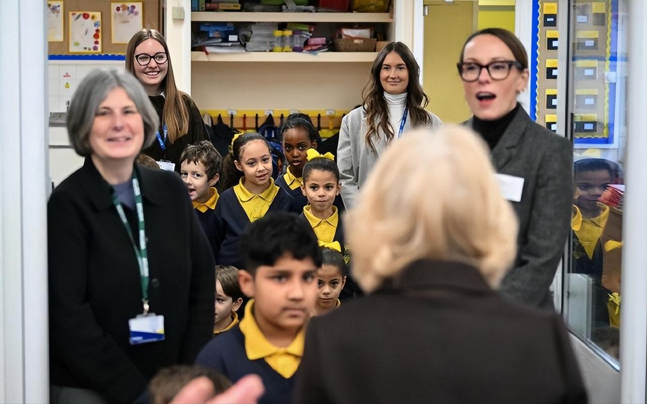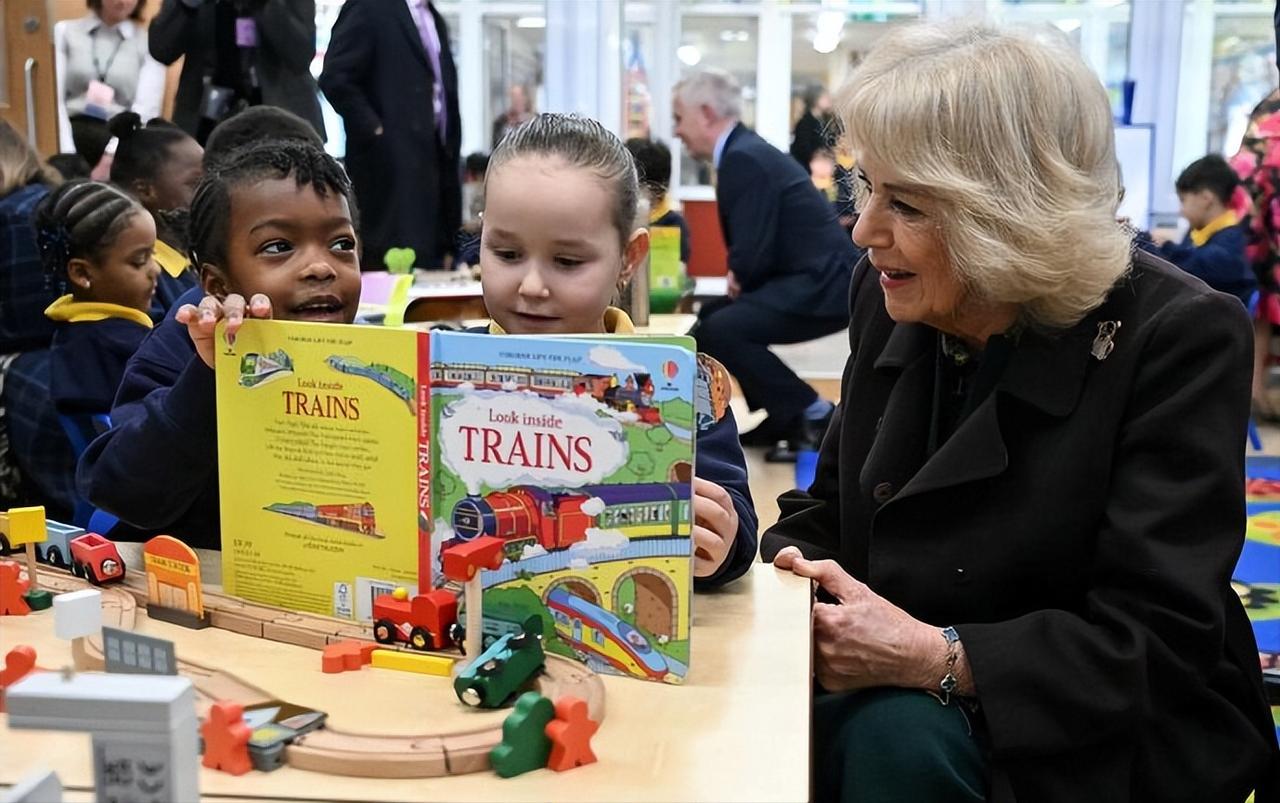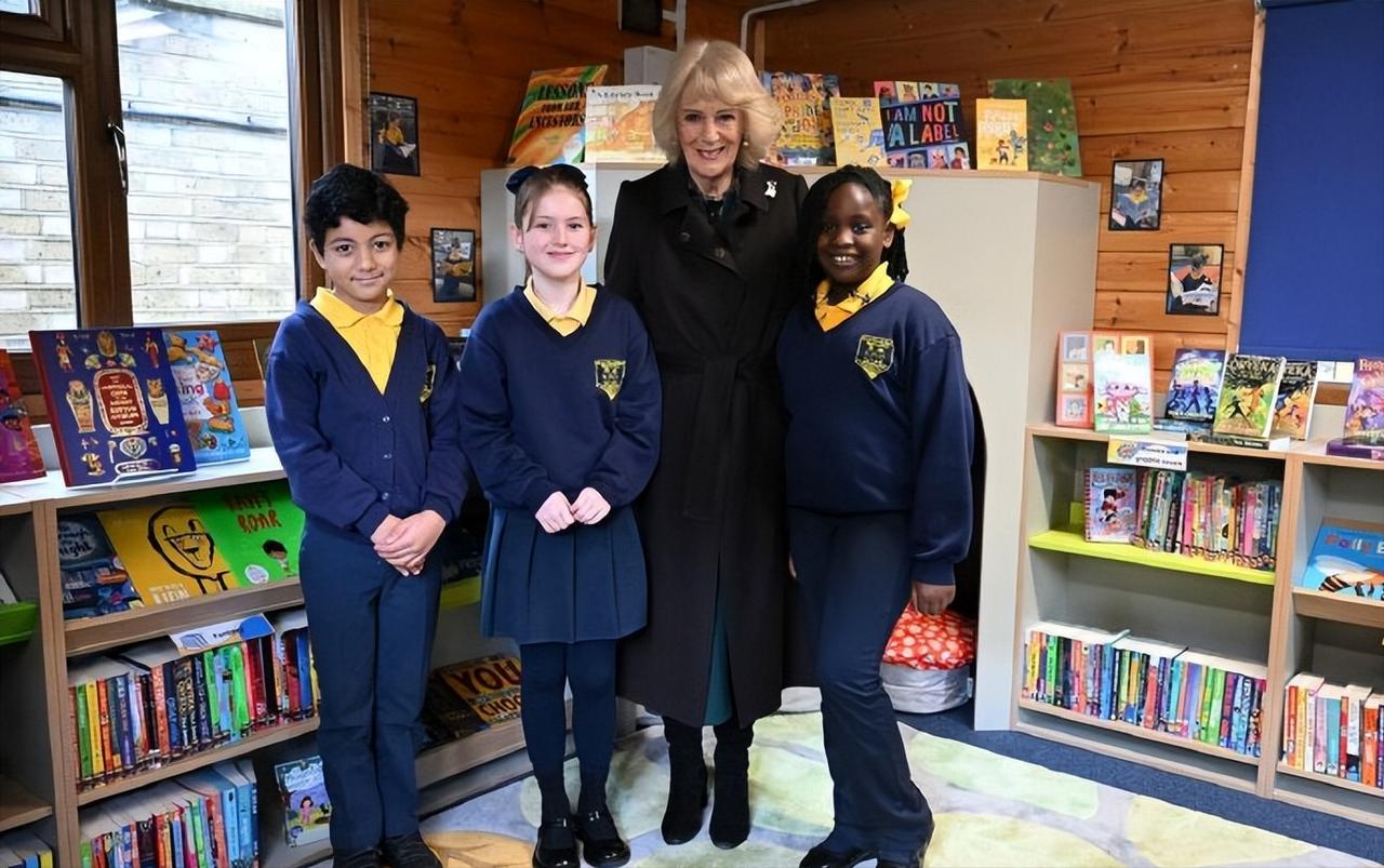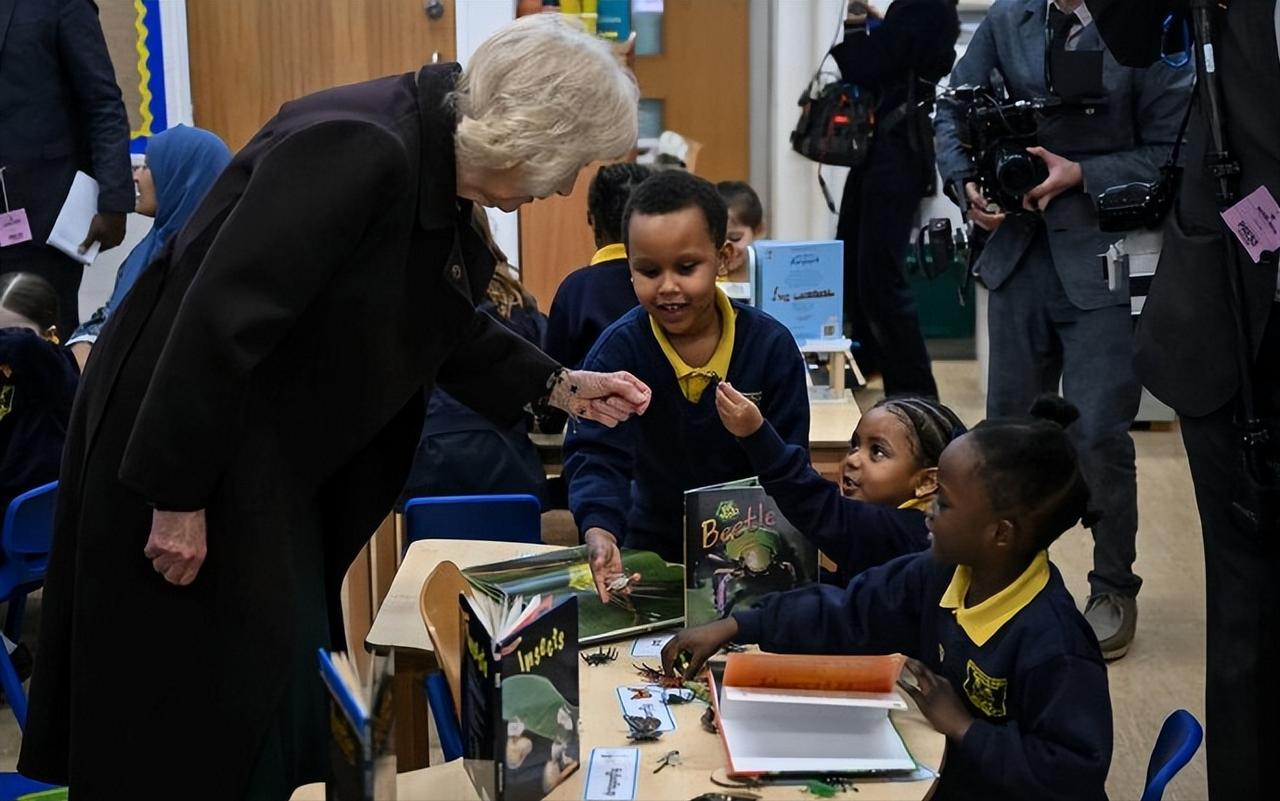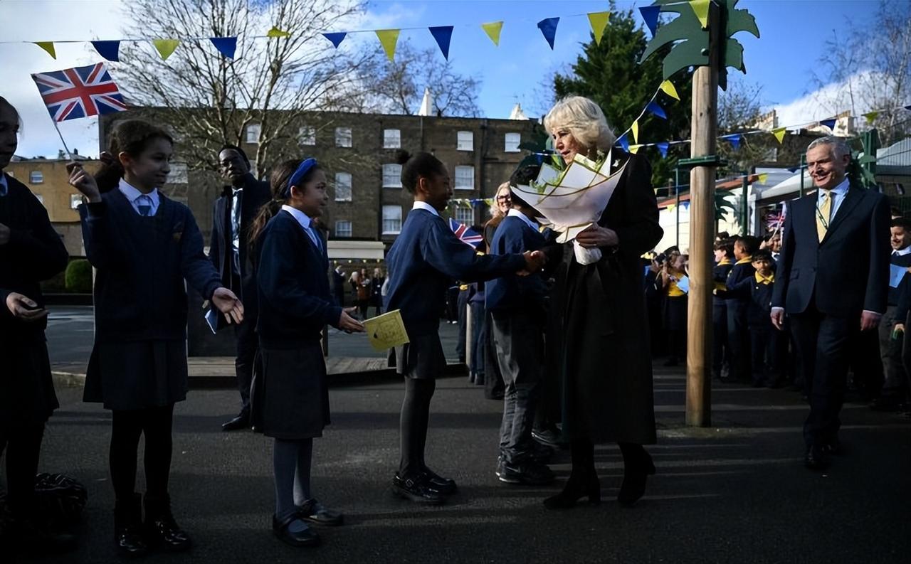 看到这样的卡米拉王后,足以说明她这20年的王室婚姻,她很幸福! 2月4日,卡米拉王后在伦敦基督教堂小学为新图书馆揭幕。 卡米拉自从成为王后后,作为王室中最尊贵的女性,她的状态真是越来越好了。 人靠衣装马靠鞍,卡米拉的衣品也是越来越好了,一袭墨绿色连身裙,搭配黑色大衣,优雅又时尚。 和婆婆伊丽莎白二世女王一样,格外喜欢佩戴胸针,不过她却更加偏爱自然风,她那时候佩戴的是梵克雅宝家幸运动物系列狗胸针。 虽然卡米拉已经78岁了,但是整个人状态很不错,整个人显得很松弛,可见她和查尔斯国王的婚姻很幸福!