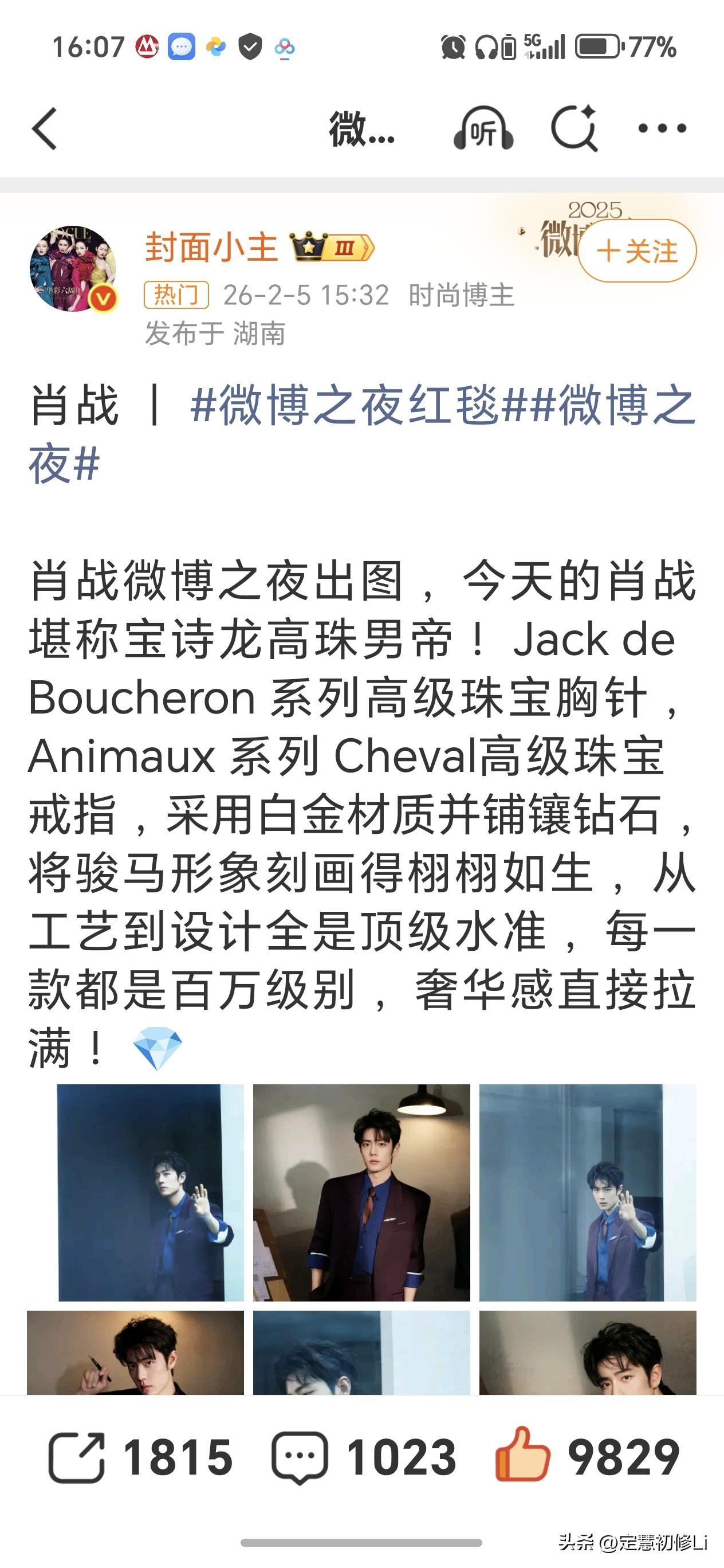 顶级珠宝才能配得上顶级大气优雅高贵的肖战啊肖战微博之夜 肖战官宣微博之夜 马头戒指好漂亮应景,马年新气象[赞][赞][加油]