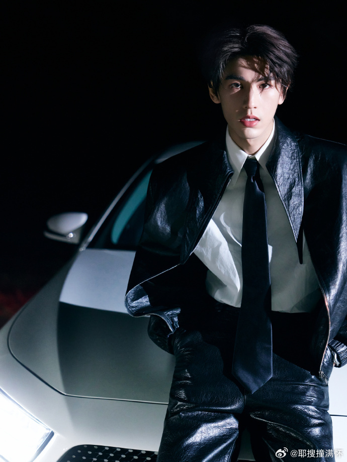张凌赫活动第二套造型张凌赫第二套皮衣look 活动第二套造型,张凌赫穿皮衣很有气