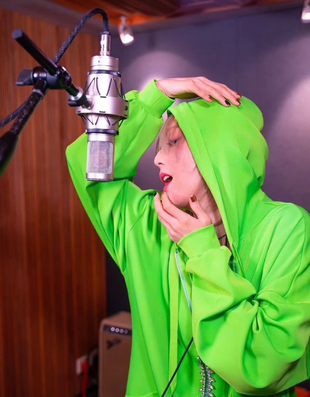 一件绿色连帽长衫打造下衣失踪穿法,性感又清新,很抢眼也很好看