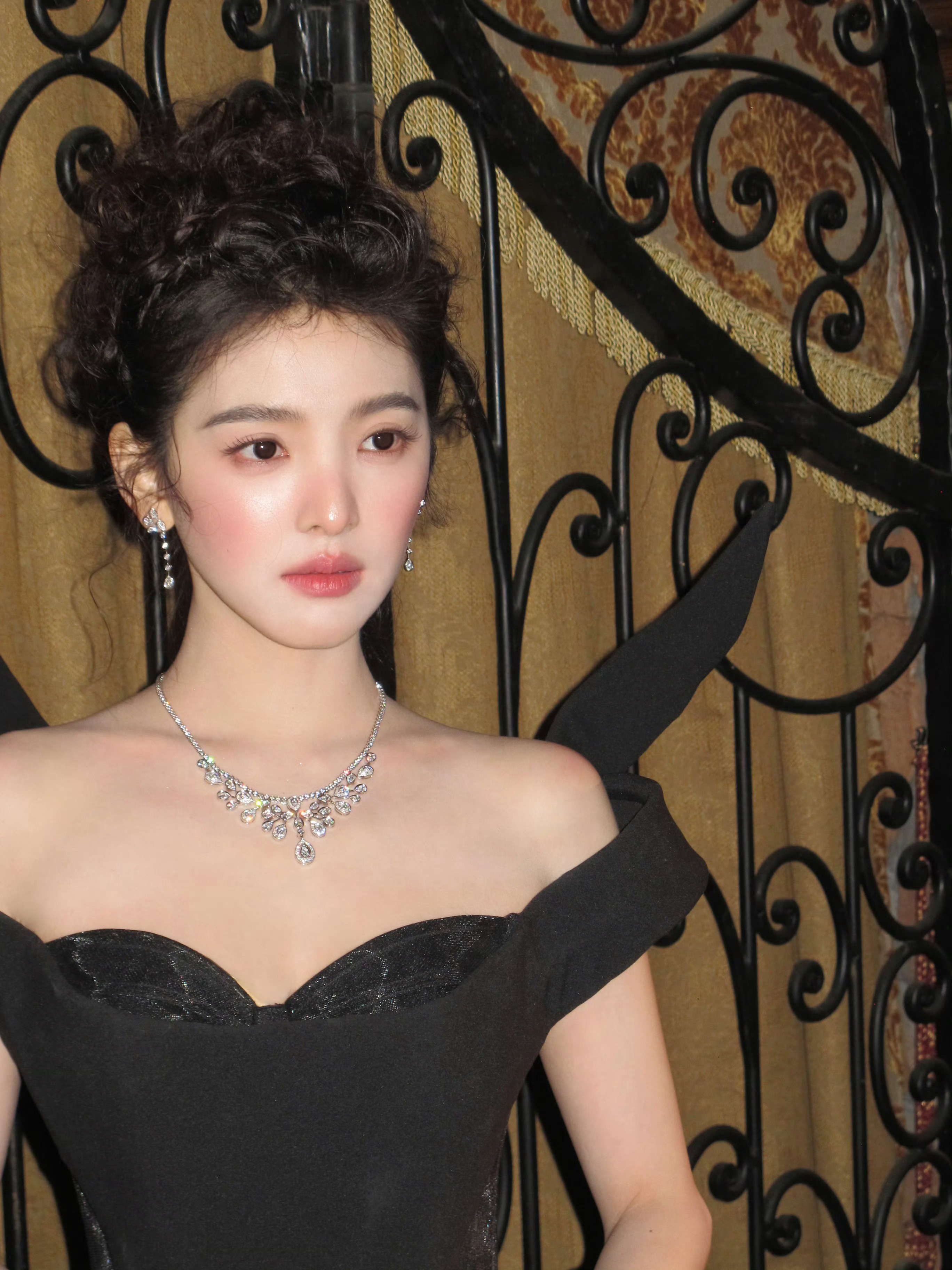 今日,出席微博之夜的章若楠,身穿的是Mark Bumgarner定制黑色礼服,佩戴的是CHAUMET Joséphine约瑟芬系列珠宝。妆发造型一言难尽,第一次见把个美女愣是给化丑了的!整个造型都非常的早年影楼风!章若楠 腮红微博之夜出图微博之夜红毯造型米拉服饰解析