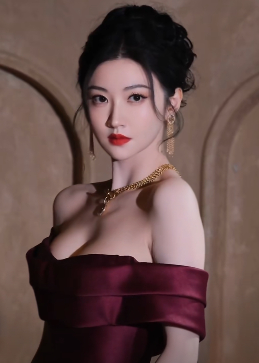 景甜状态不错啊 酒红色露背缎面裙一穿,冷白皮在灯光下白到发光,一字肩把流畅的肩颈