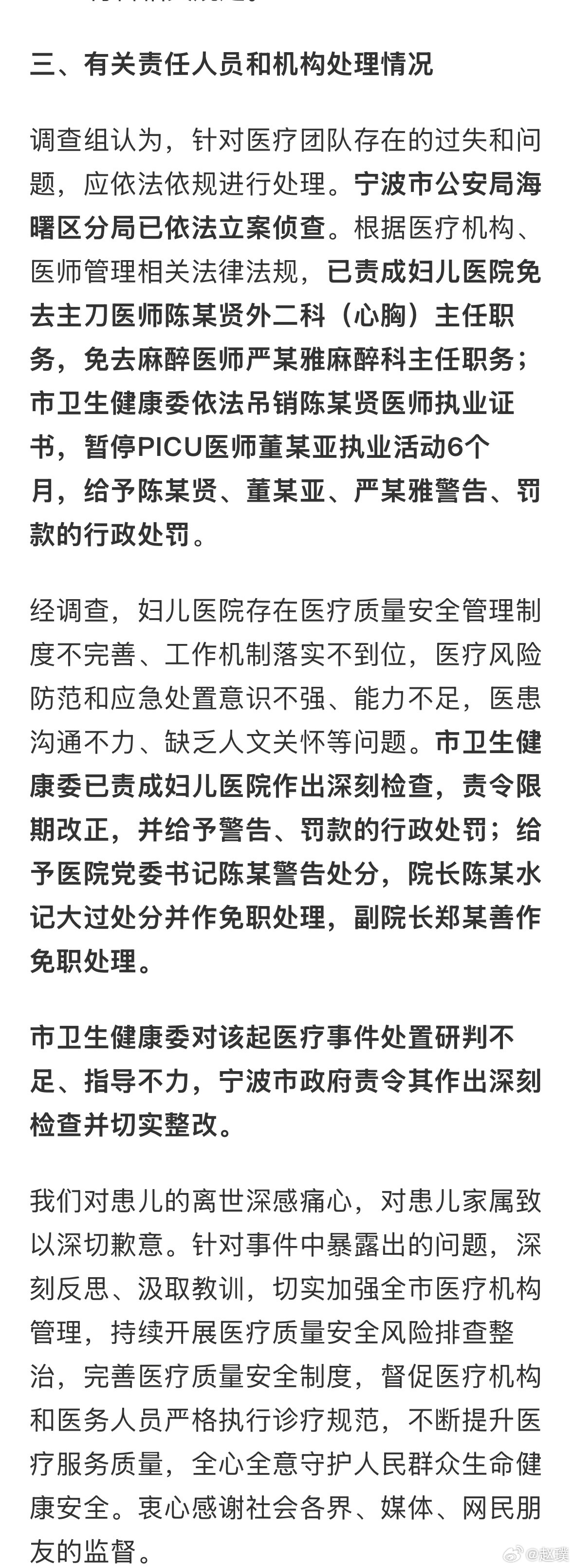 小洛熙事件最新通报终于有一个官方结果了!主刀医生免职+吊销执业证,麻醉医生、院长、副院长免职。