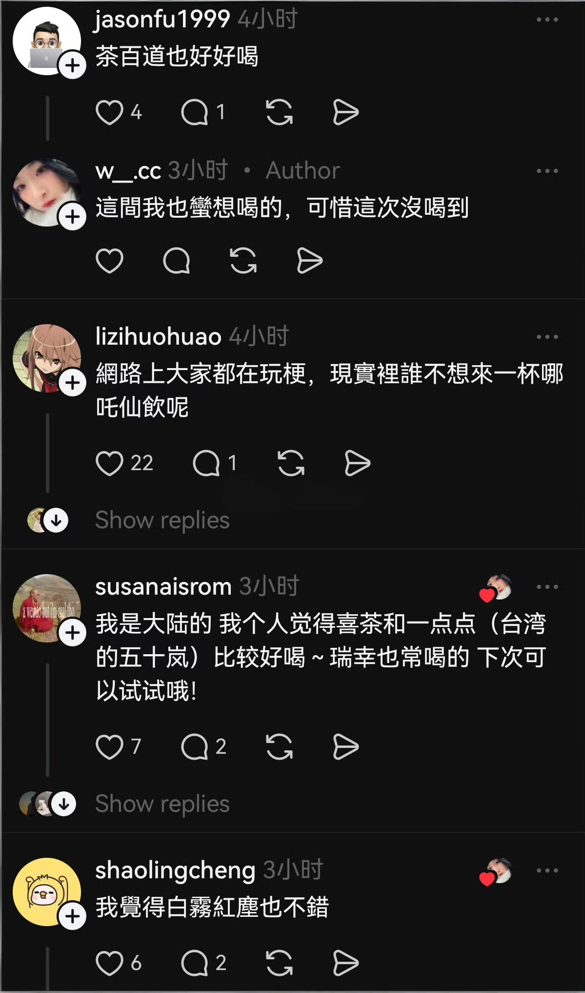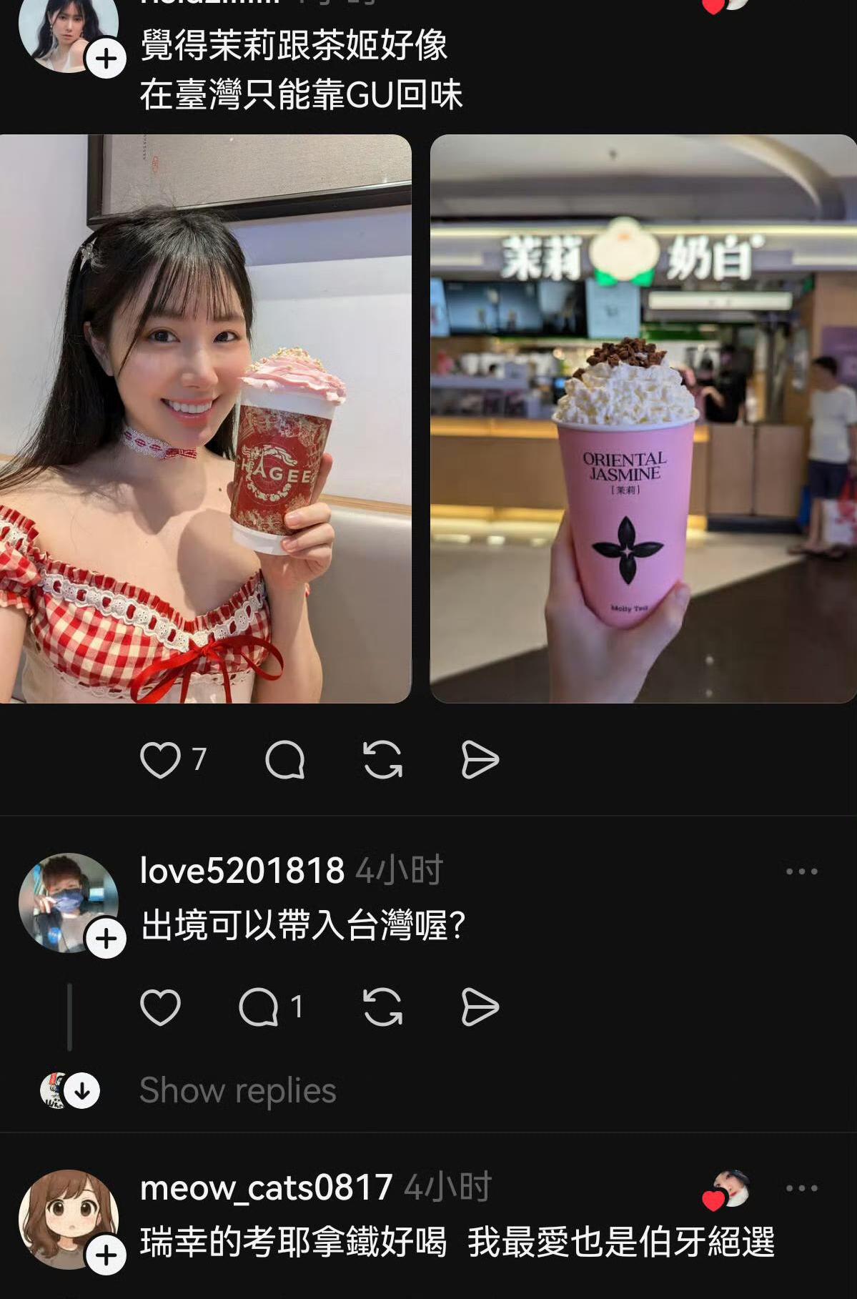 近日,看到很多台湾省的游客来到大陆旅游,她们在网上分享大陆的奶茶好好喝,每天不重样的喝不同的奶茶,回去的时候还要打包带走… 我记得好久之前就在小红署上就看到他们说他们的奶茶很卷,便宜又美味,大陆的竞争不过的….很多都是嘴上说着不要,实际上真香![捂脸]