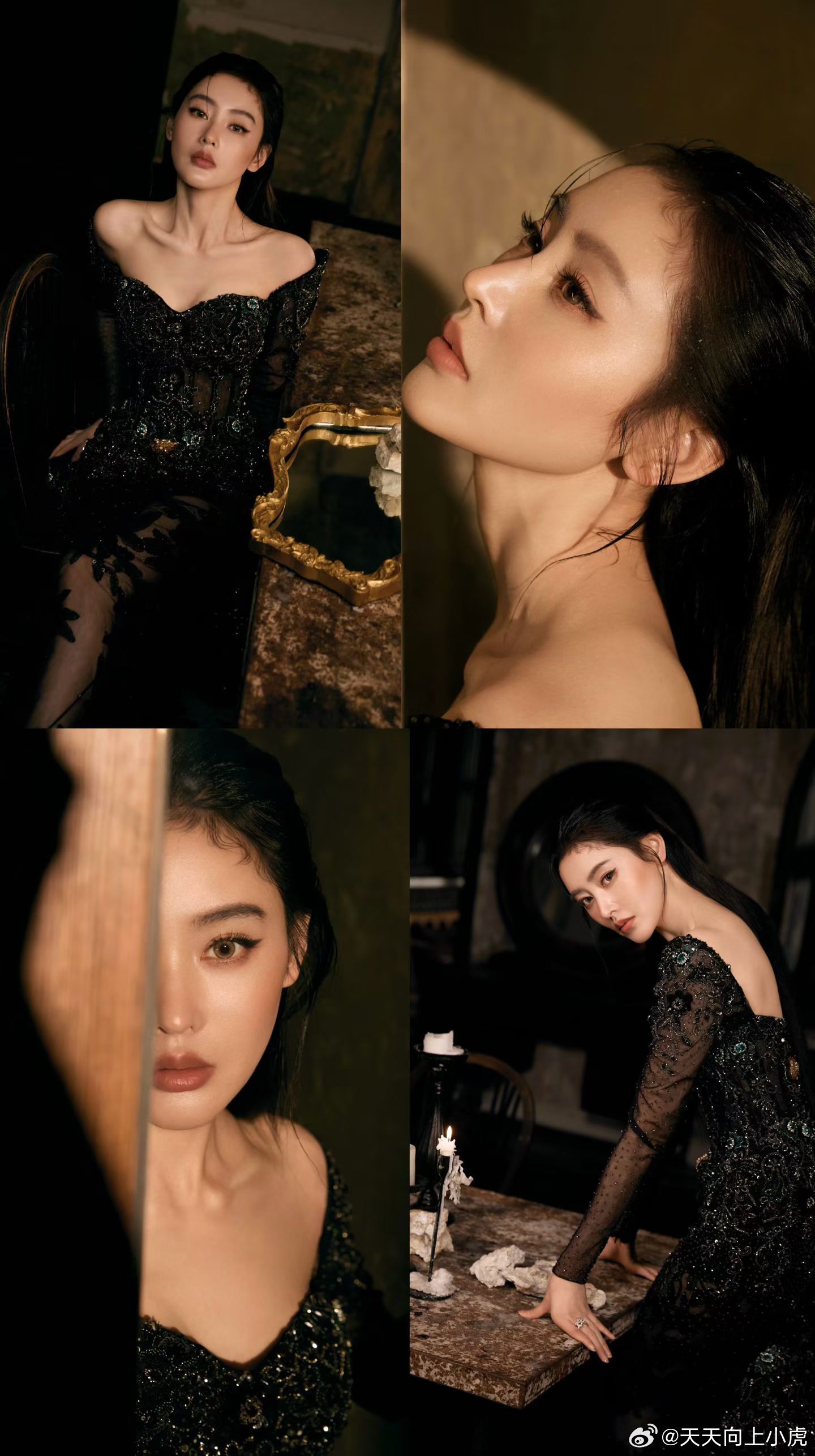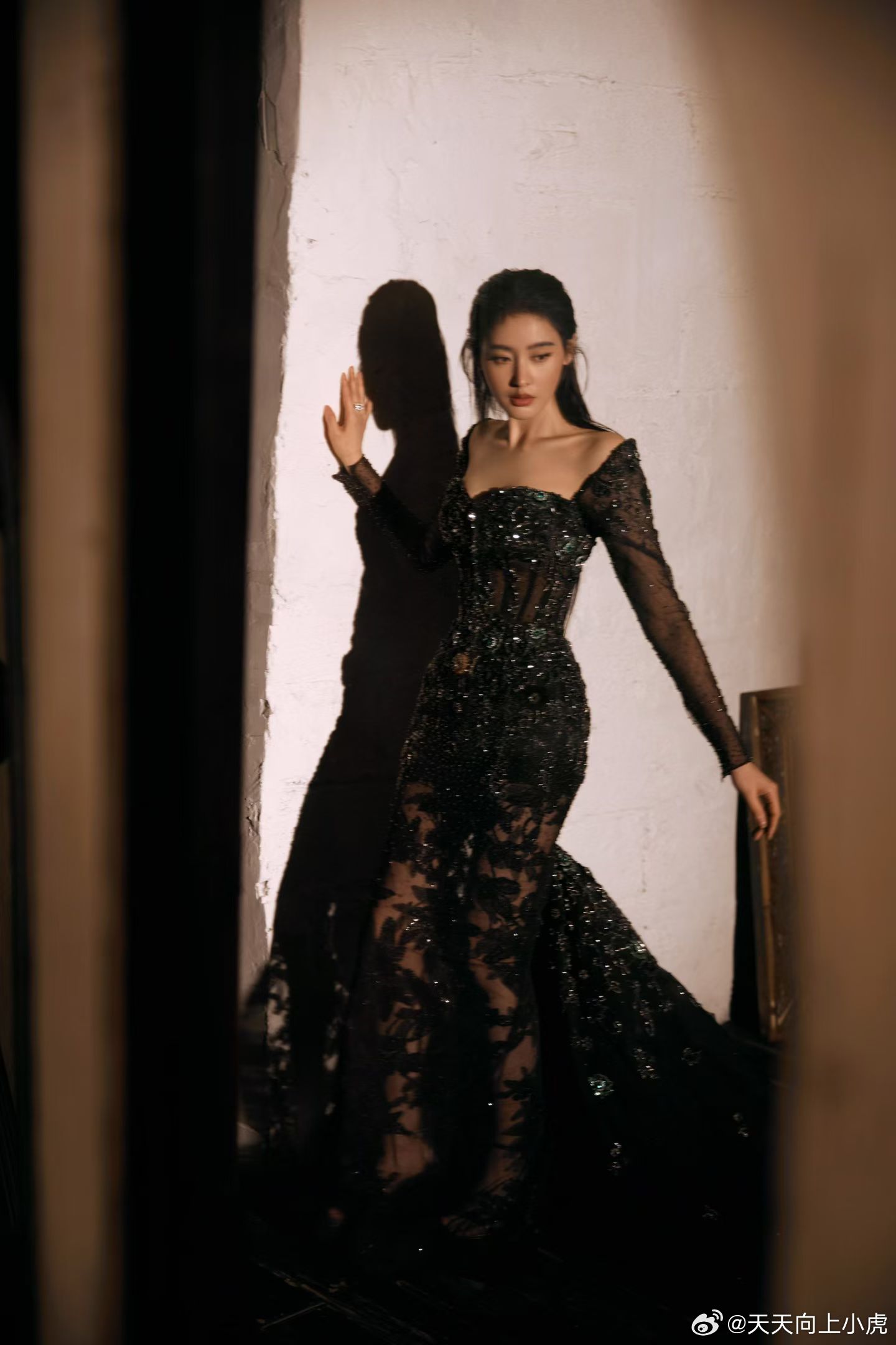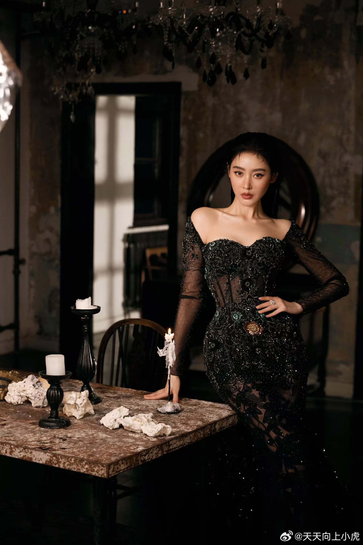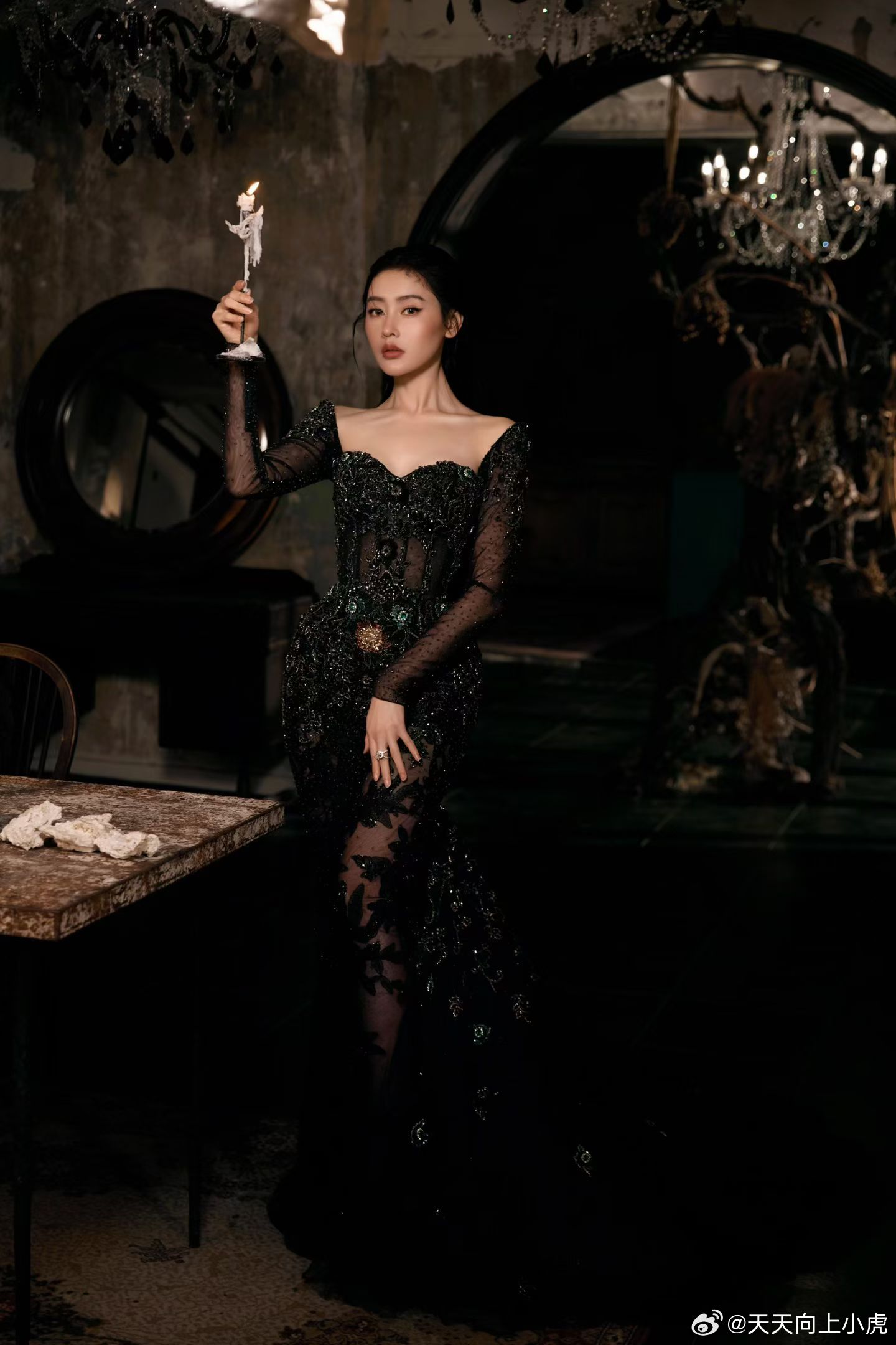 张天爱红唇黑裙造型女王来的微博之夜张天爱造型鲨疯了!黑色闪钻礼裙勾勒绝美身姿