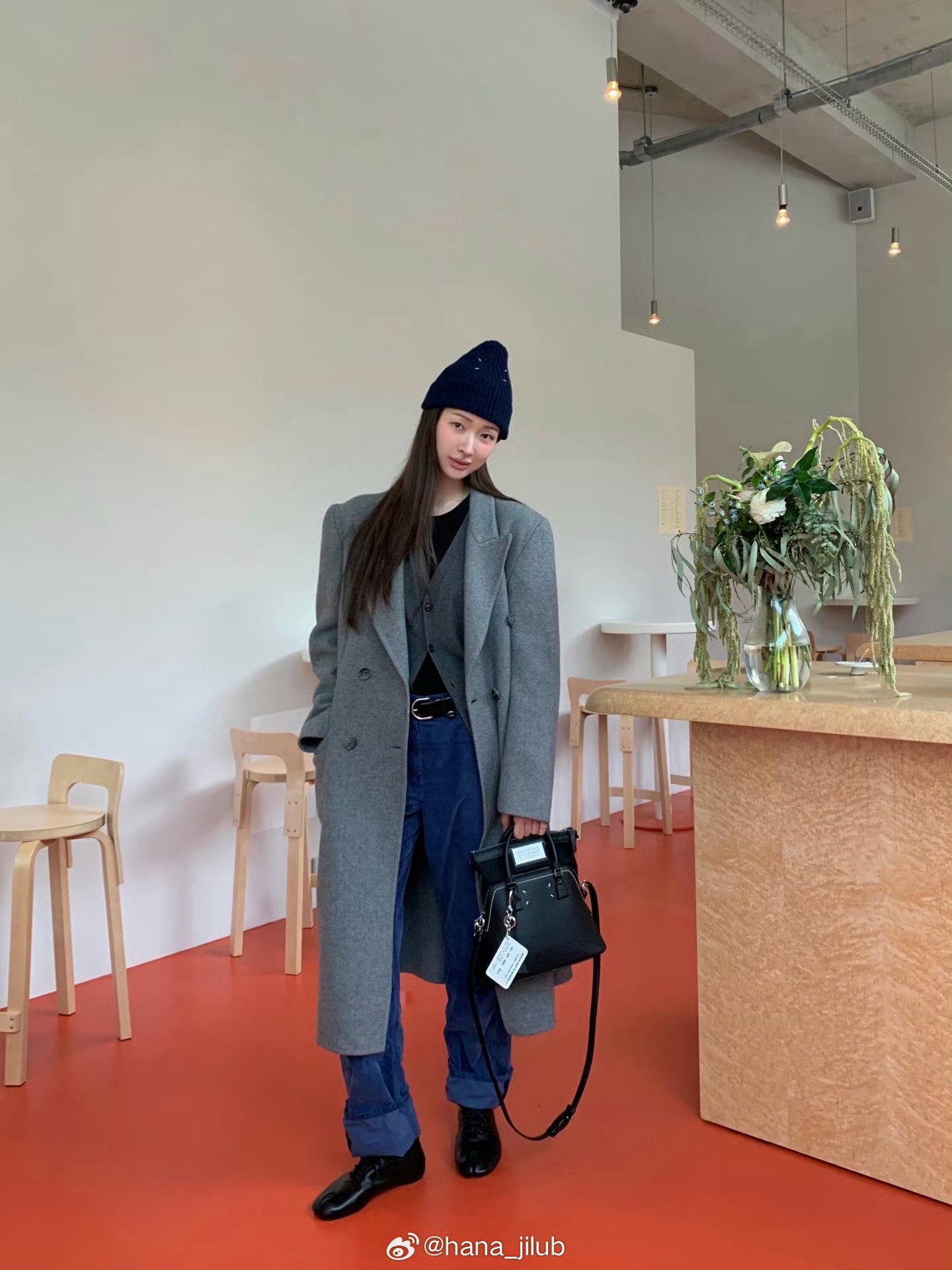 冬日穿搭指南:蓝色西装外套高领毛衣加牛仔裤,保暖又时上!
