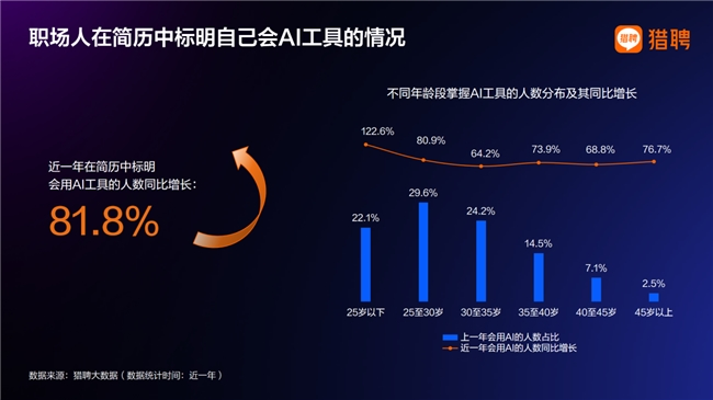 2、AI全龄化成为中国职场新特征,简历标会AI工具人数激增81.8%