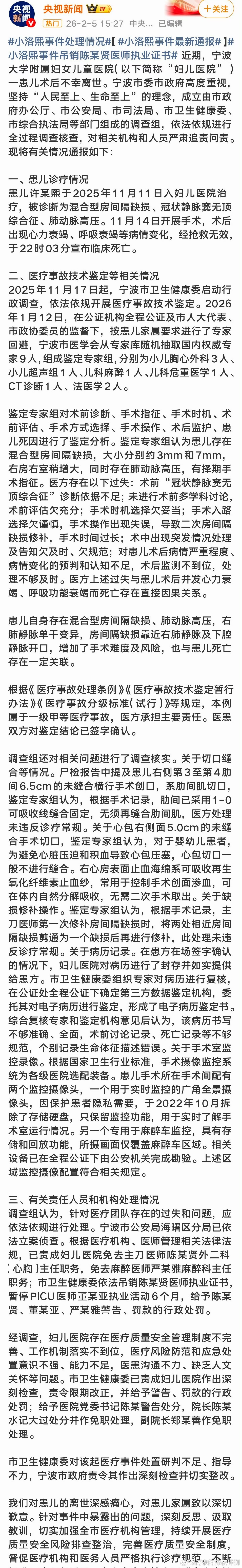 小洛熙事件最新通报坚持发声是有作用的最新通报来了,医疗事故技术鉴定专家组判定此例