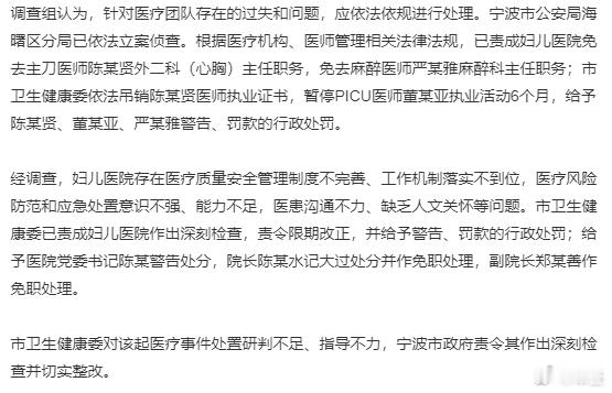 概括来说,这起事件中,院方多人存在诸多过失和问题,也正是这一连串的问题导致了一条生命的逝去。只能希望各大医院和每个医生都能以次为鉴,不要重蹈覆辙,医疗的规范和安全事关人命,哪怕再严厉的处罚,也无法抹平家属的伤痛。小洛熙事件最新通报小洛熙事件吊销陈某贤医师执业证书