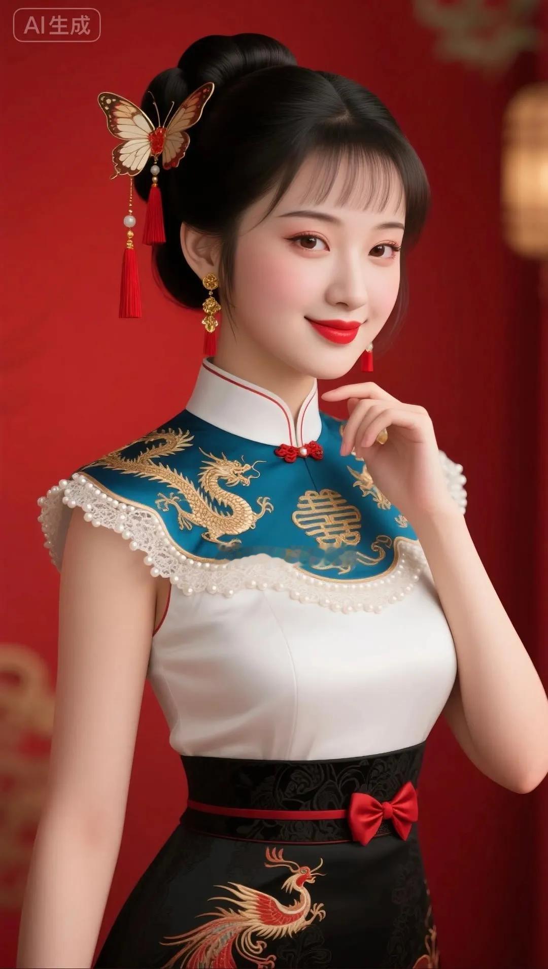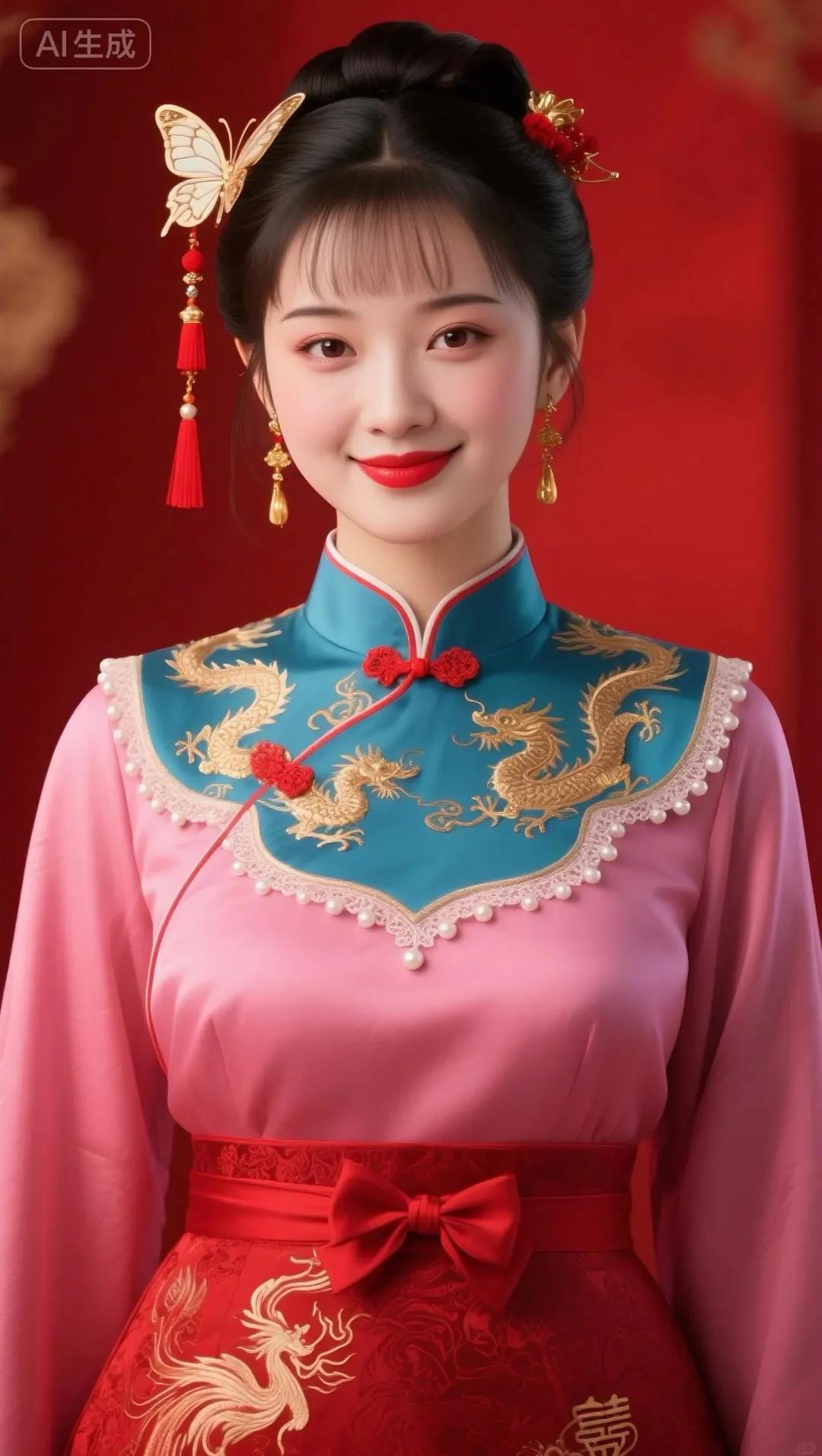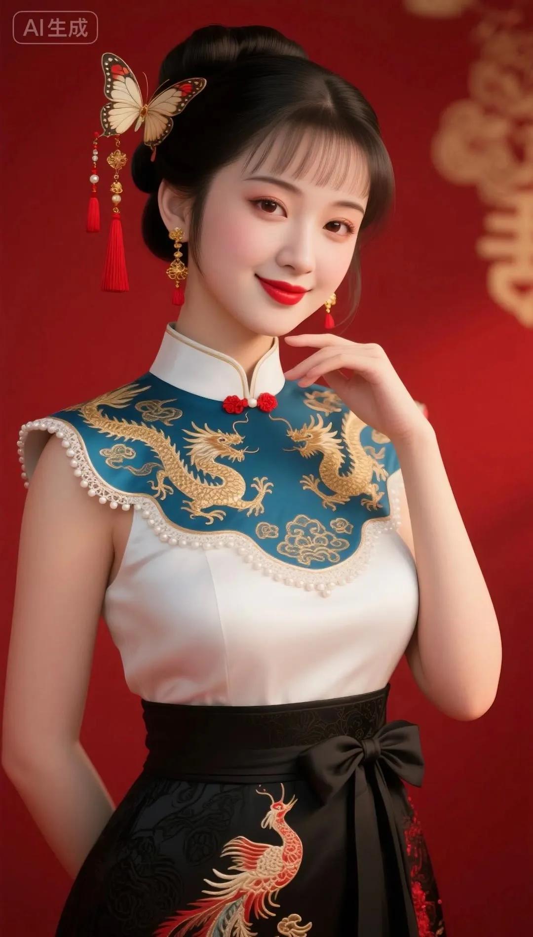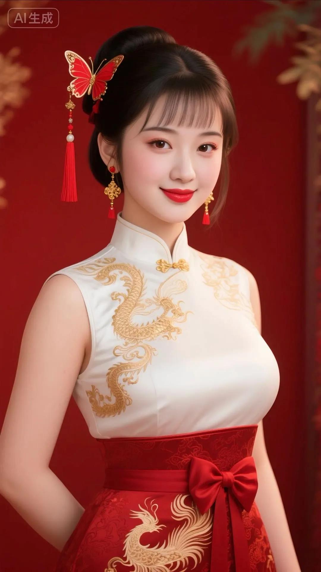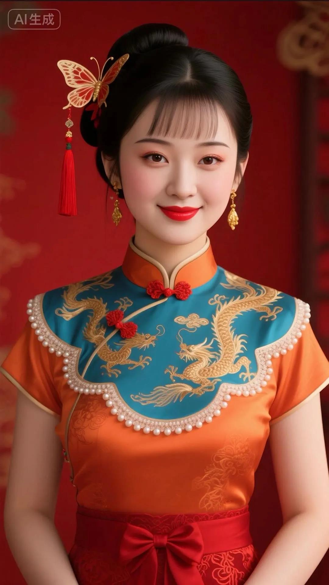 惊艳的东方美人,红衣金龙,典雅而华丽!