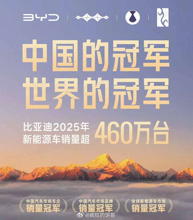 比亚迪2025全年销量直接干到 460万辆,不只是中国市场第一,还是全球新能源销量冠军,而且已经是连续第四年卫冕了,彰显世界冠军硬核实力。12 月还完成了第1500万辆新能源车下线,国内市场王朝、海洋两大体系依旧是主力输出,秦、元、海豹这些车,而腾势、方程豹、仰望这些高端品牌也开始稳步起量。