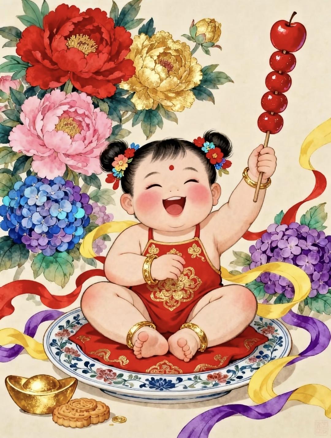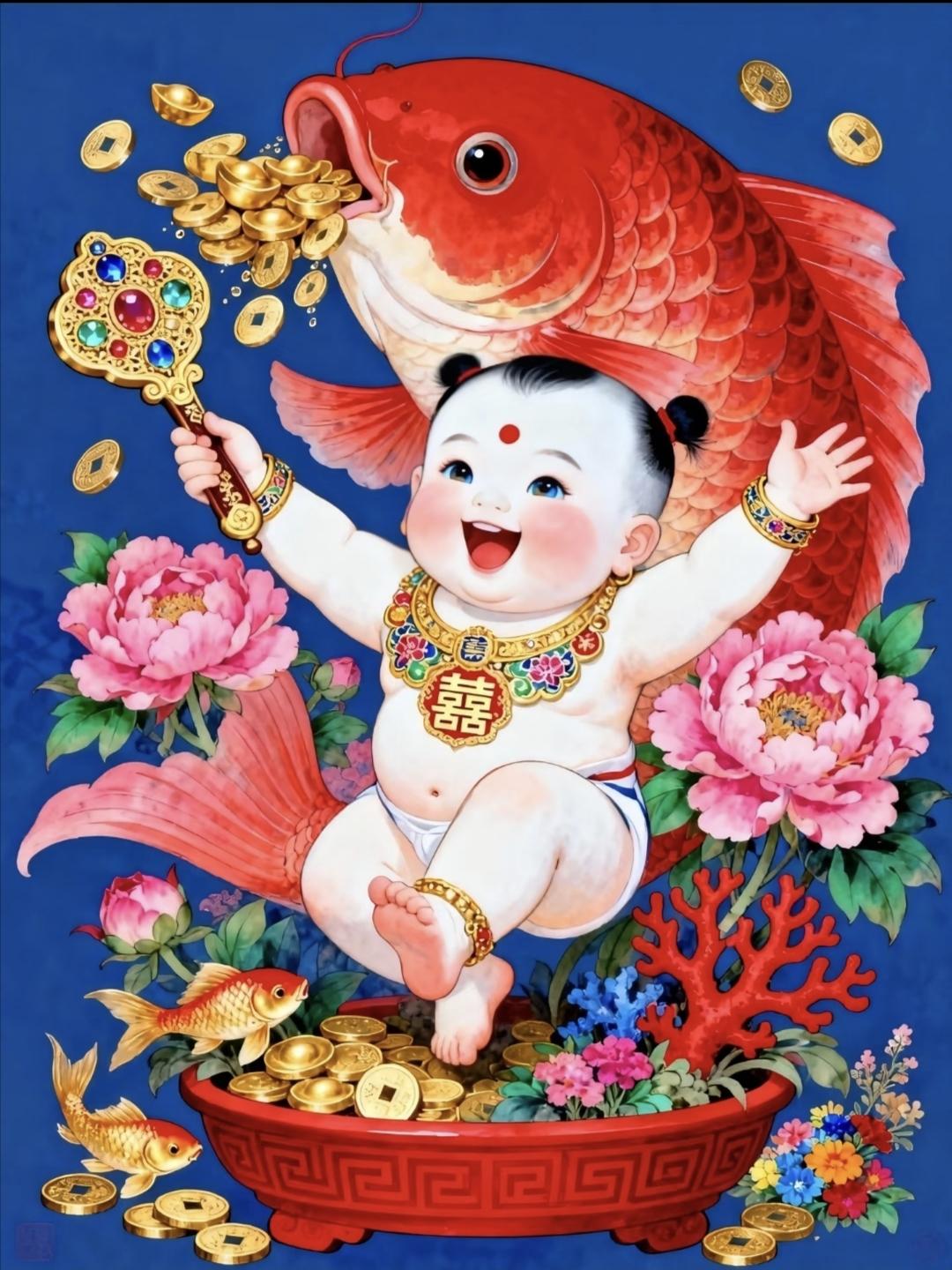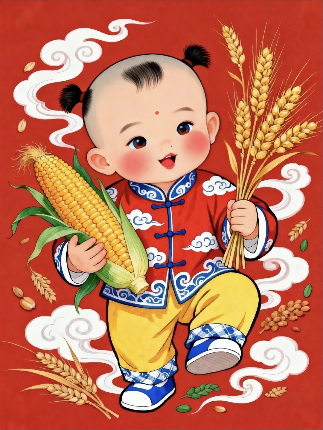 好运连连·年年有余·五谷丰登·富贵吉祥|年画娃娃 传统文化 绘画