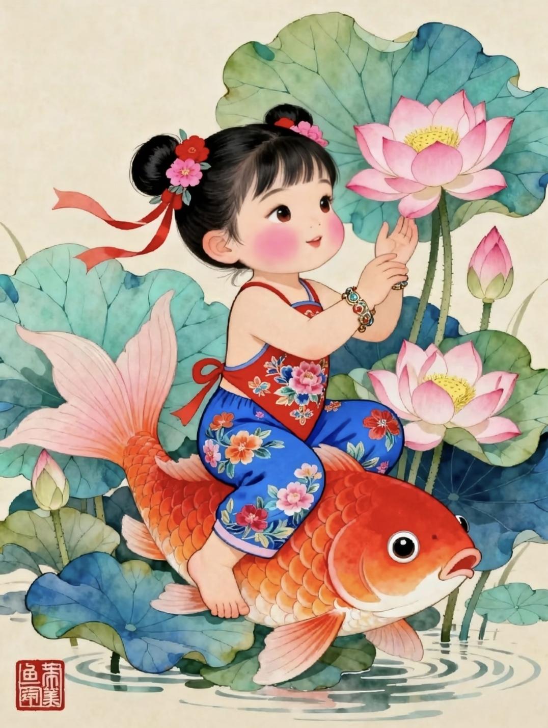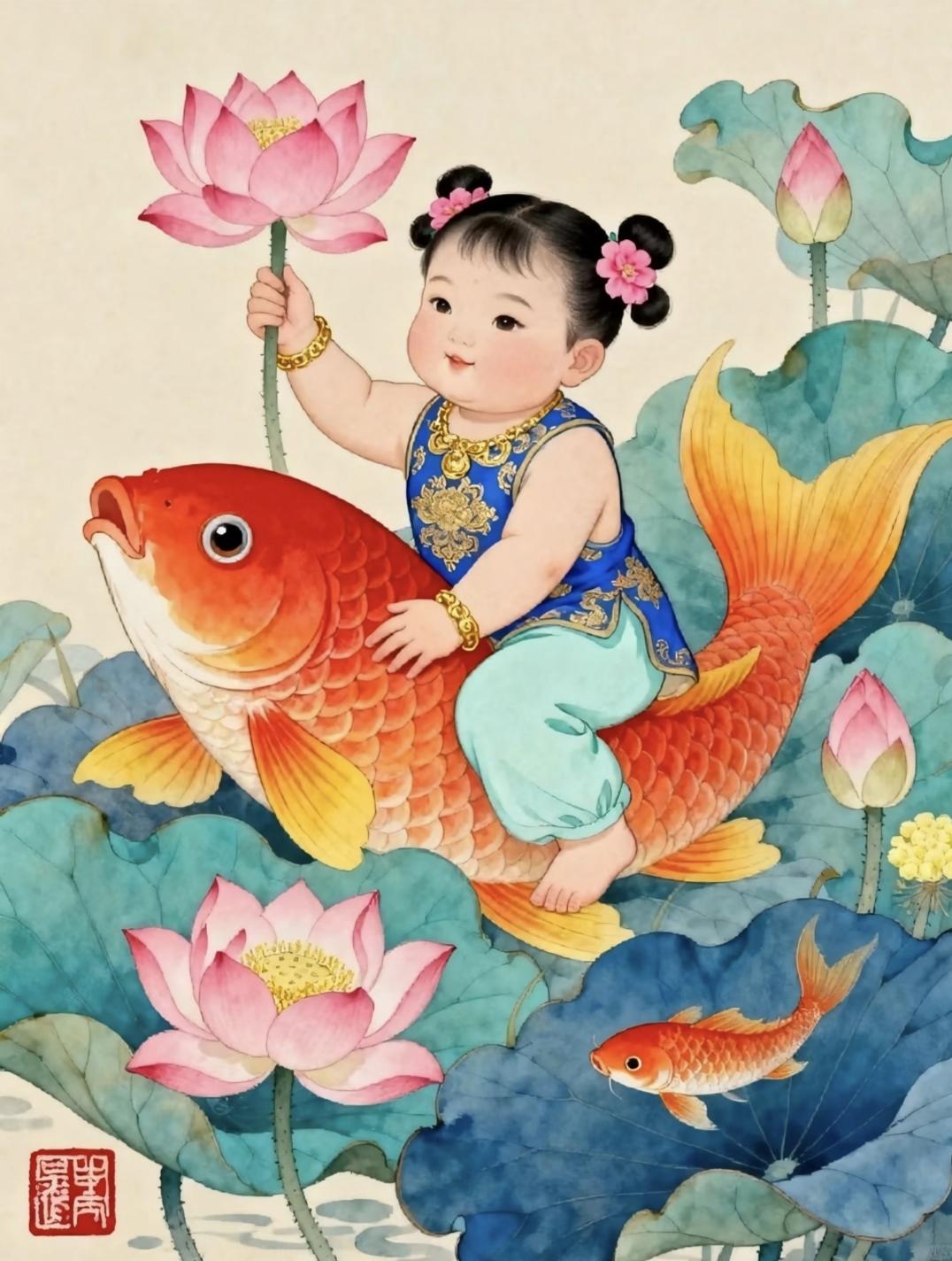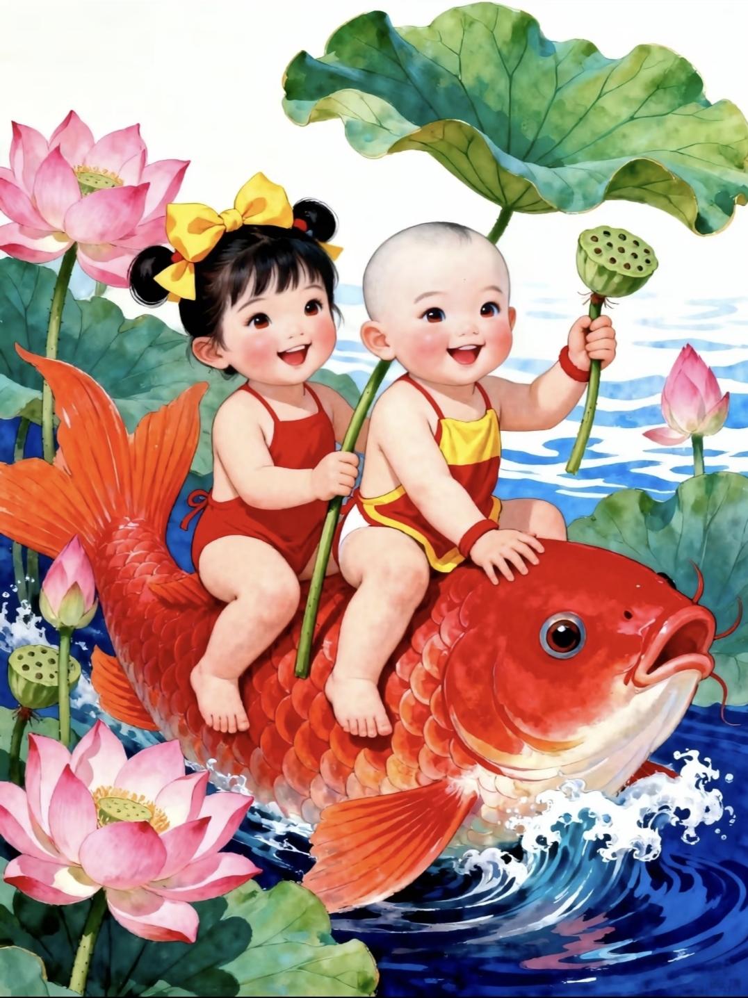 好运连连·年年有余·五谷丰登·富贵吉祥|年画娃娃 传统文化 绘画