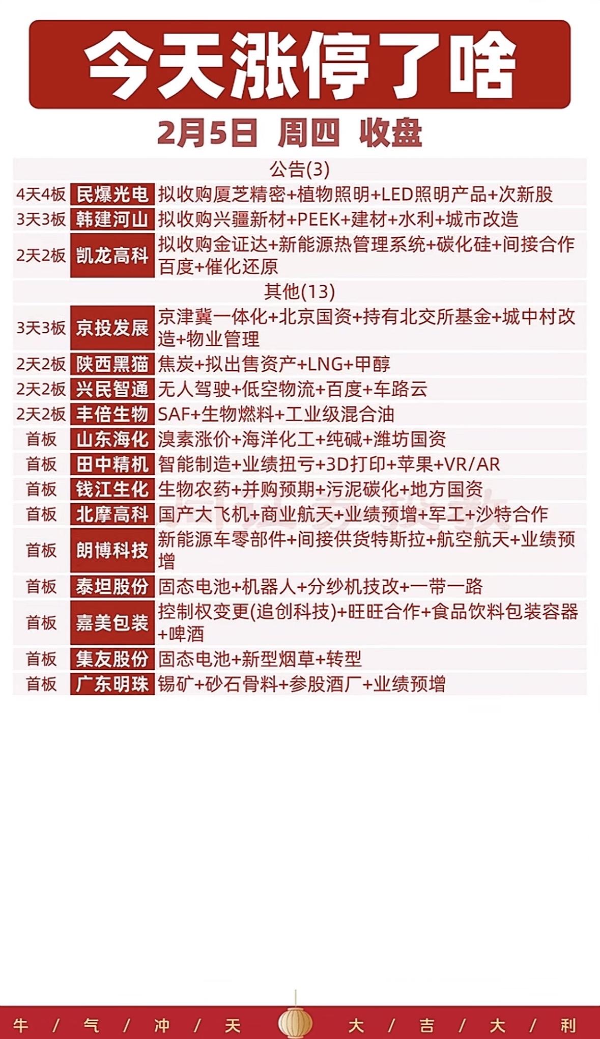 2月5日今日涨停板股票大盘点,抓住投资机会! "消费零售与影视股领涨,福建板块