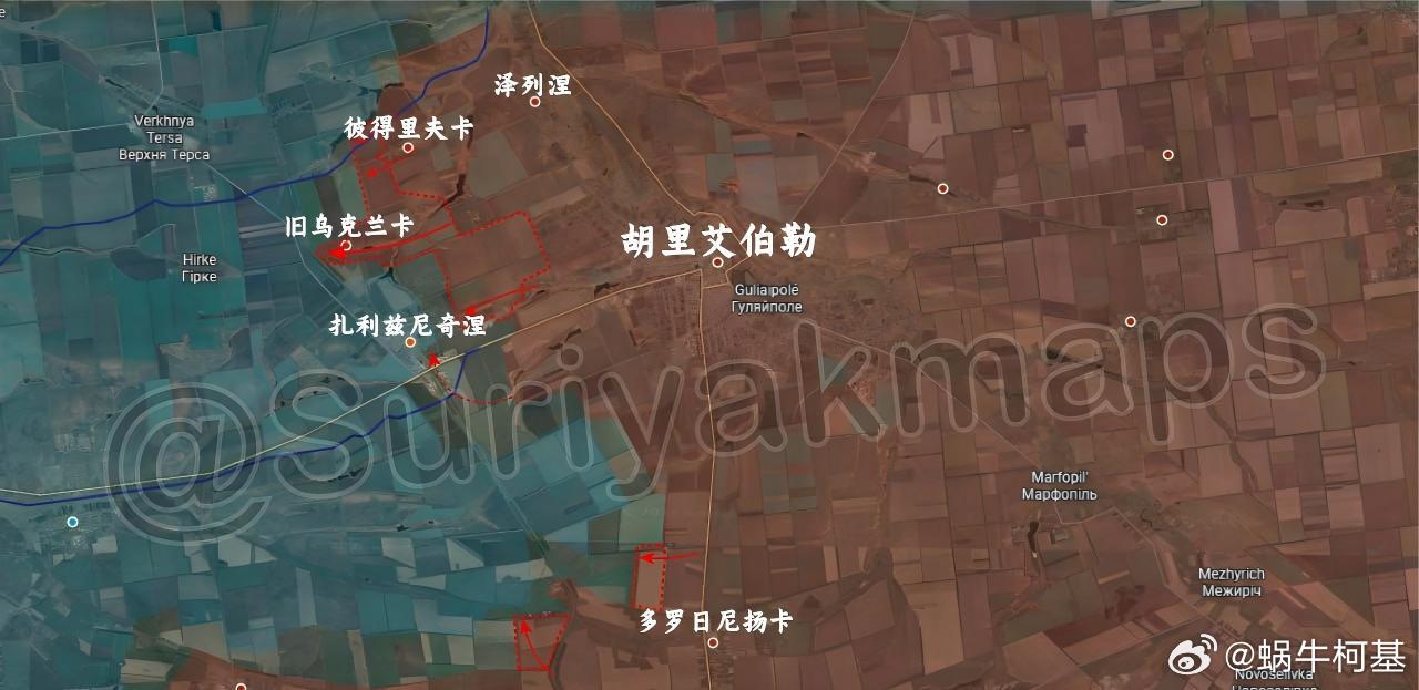 乌苏更新2.4俄乌局势1、塞弗尔斯克:俄军控制了扎基特内以南的新阵地,并继续向里兹尼基夫卡中部推进。2、多布罗皮利亚:俄军继续扩大托列茨科耶周围的缓冲区,控制了其中一个阵地。此外,俄军完全收复了扎特绍克和苏赫茨克,继续沿罗金西克以西的铁路线推进。3、胡里艾伯勒:俄军持续向西推进,夺取了扎利兹尼奇内以东的阵地,以及旧乌克兰卡。来源:suriyakmaps俄乌局势新进展特朗普回应是否抓捕普京普京称已无兴趣等乌方从占领区撤出
