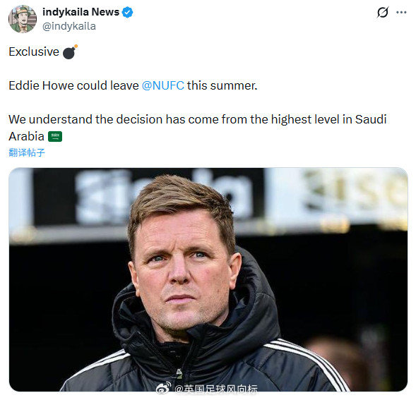 【埃迪豪可能离开纽卡】绿帽哥独家:纽卡斯尔联主帅埃迪豪,有可能在今年夏天离职,这个决定来自俱乐部背后沙特财团的最高层。