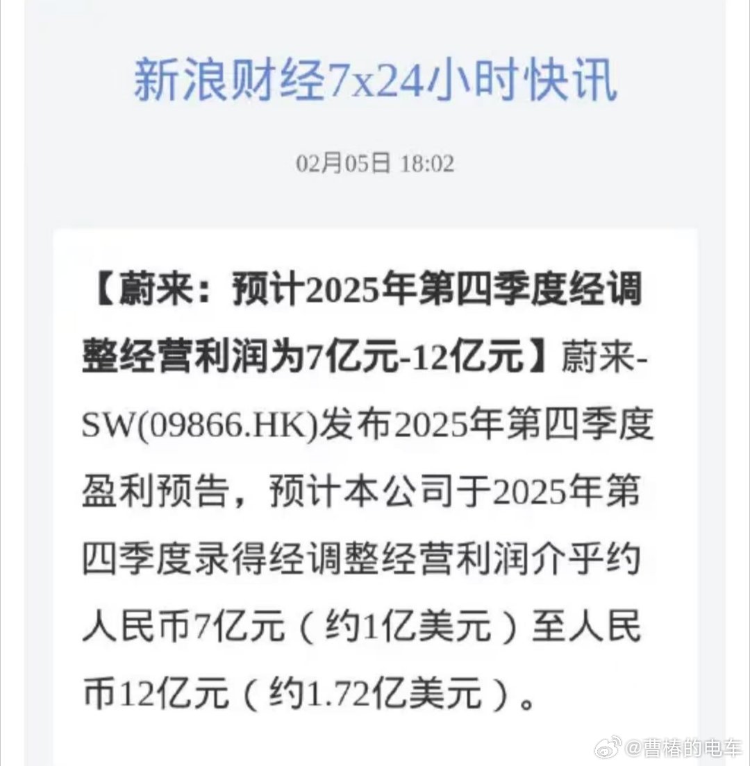 盈利!!!蔚来25年第四季度盈利7-12亿!恭喜蔚来!大v聊车蔚来乐道汽车新能源汽车