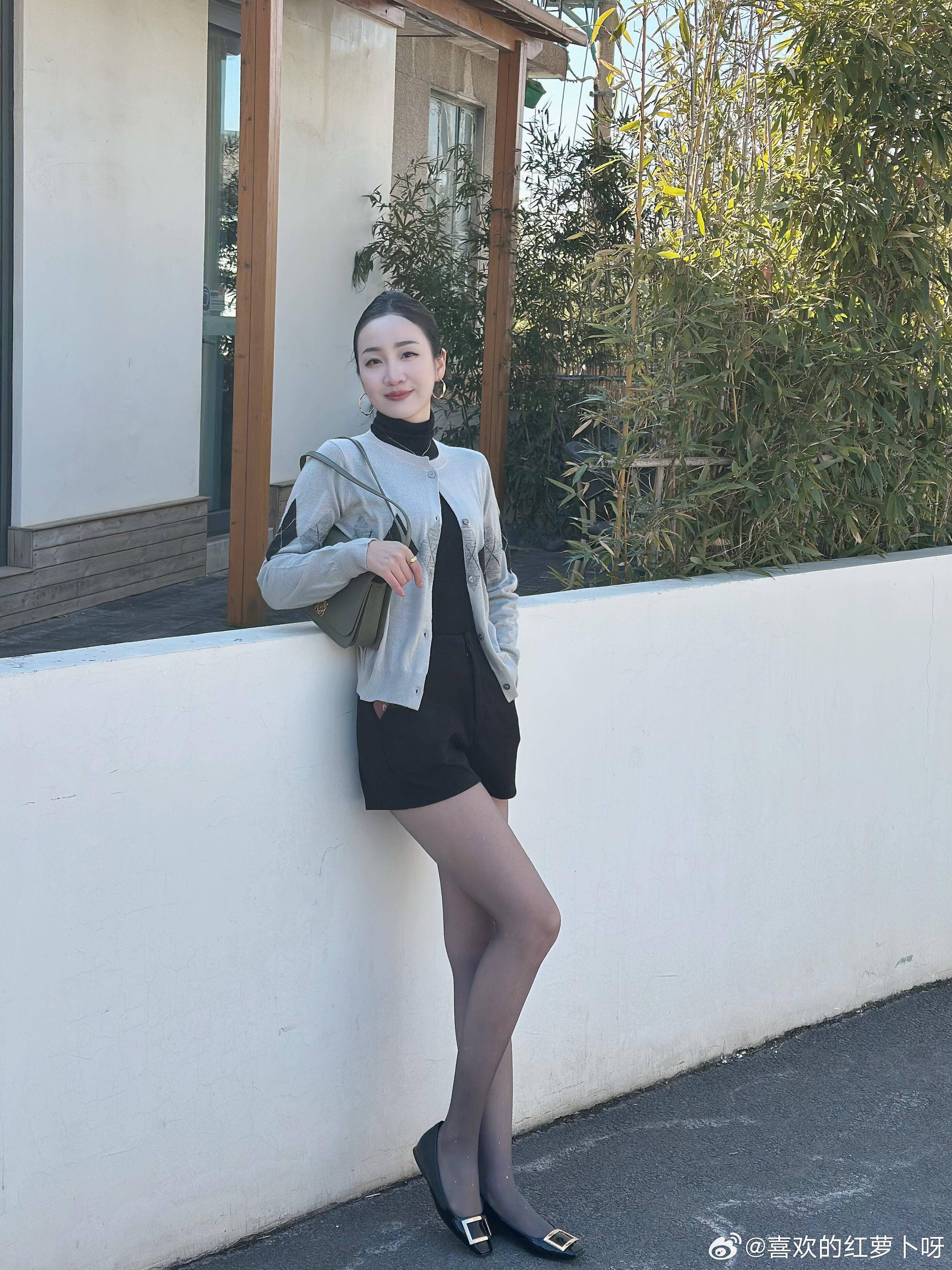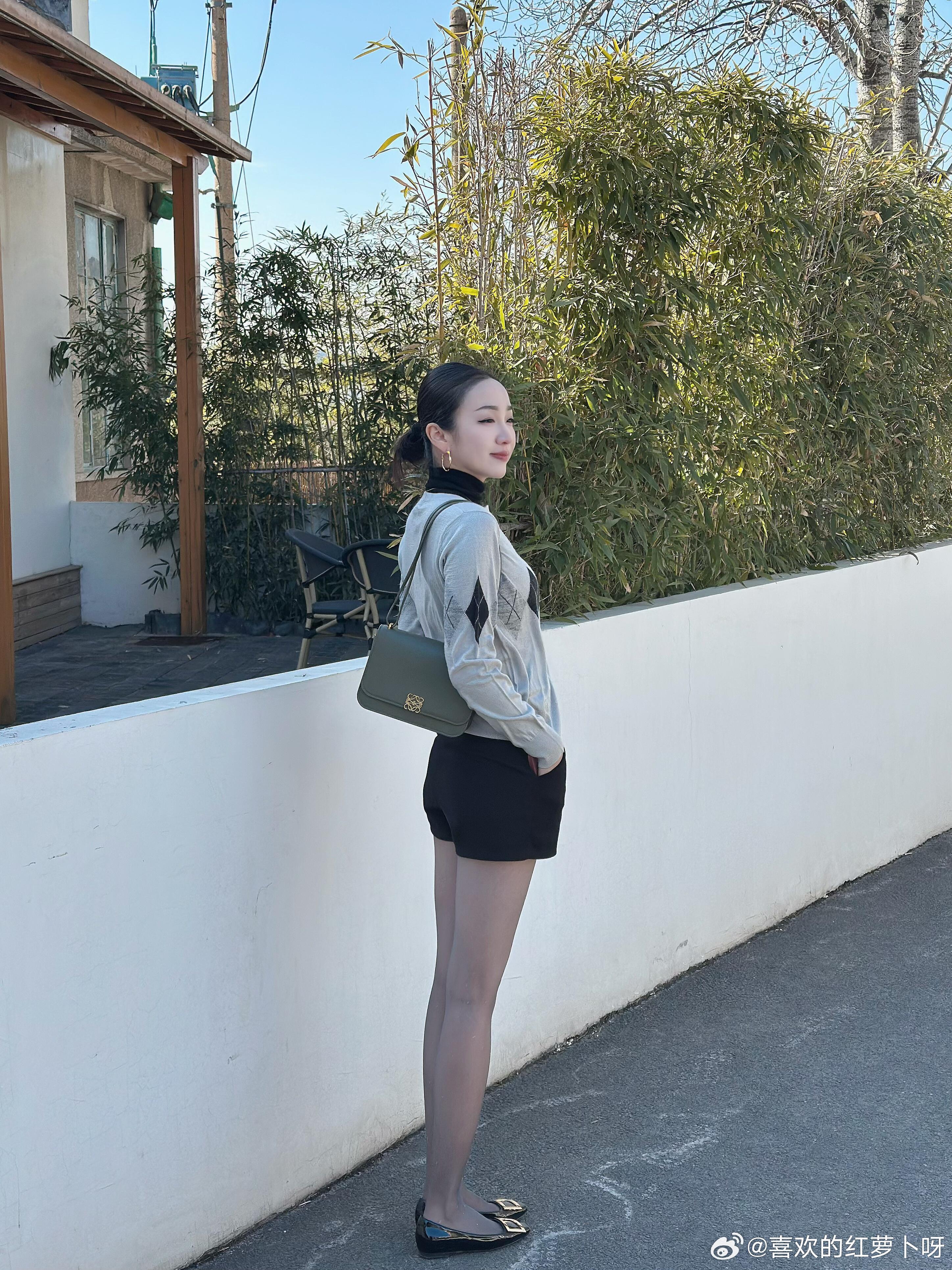 董璇机场私服又美又飒挂脖针织+星星破洞牛仔裤,松弛感拉满✨丸子头配墨镜,