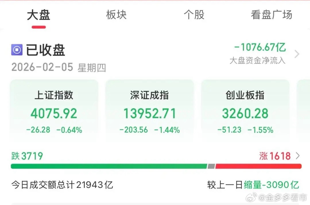 老登股走强、小登股退潮!大盘调整风险仍存2月5日,A股三大指数今天调整,赚钱效应低迷,板块和个股多数下跌,影视、旅游和白酒等大消费板块走强,光伏、贵金属、新能源和煤炭等板块领跌,盘面有两点值得关注:1、大消费板块震荡走强的直接原因是临近春节9天超长假期,迎来消费旺季。更重要的原因是板块调整非常充分,处于底部区域,明天或有调整,但是踏空者的布局机会,因为板块行情会持续到春节后。2、贵金属、光伏和CPO等板块走低,白银有色、湖南黄金以及钧达股份等多股跌停。贵金属下跌的主要原因是现货黄金和白银市场日内重挫,光伏调整主要是因为行业协会提醒目前太空光伏技术仍处于初期阶段。目前盘面非常清晰,老登股和小登股完成角色交换,老登股进二退一,小登股进一退二。大家要及时转换思路,不要等老登股高潮后再去追,即使死守小登股,也轻易不要进场。毕竟这样的局面还会持续一段时间。大盘方面,今天如期调整,沪指正好收在4048至4102震荡区间中间位置,明天难以预判涨跌。但结构顶部是减仓机会,结构底部不是加仓机会,因为下周是节前最后一个交易周,市场面临抛压,大盘还有进一步调整向3975附近寻求支撑的可能。