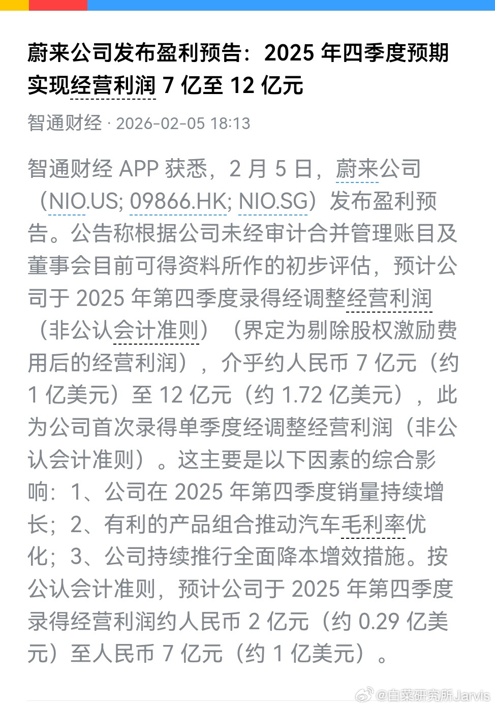 蔚来单季度盈利了哎,Q4销量表现确实好,现在就等着看看财报正式发出来,盈利到底是怎么构成的大v聊车