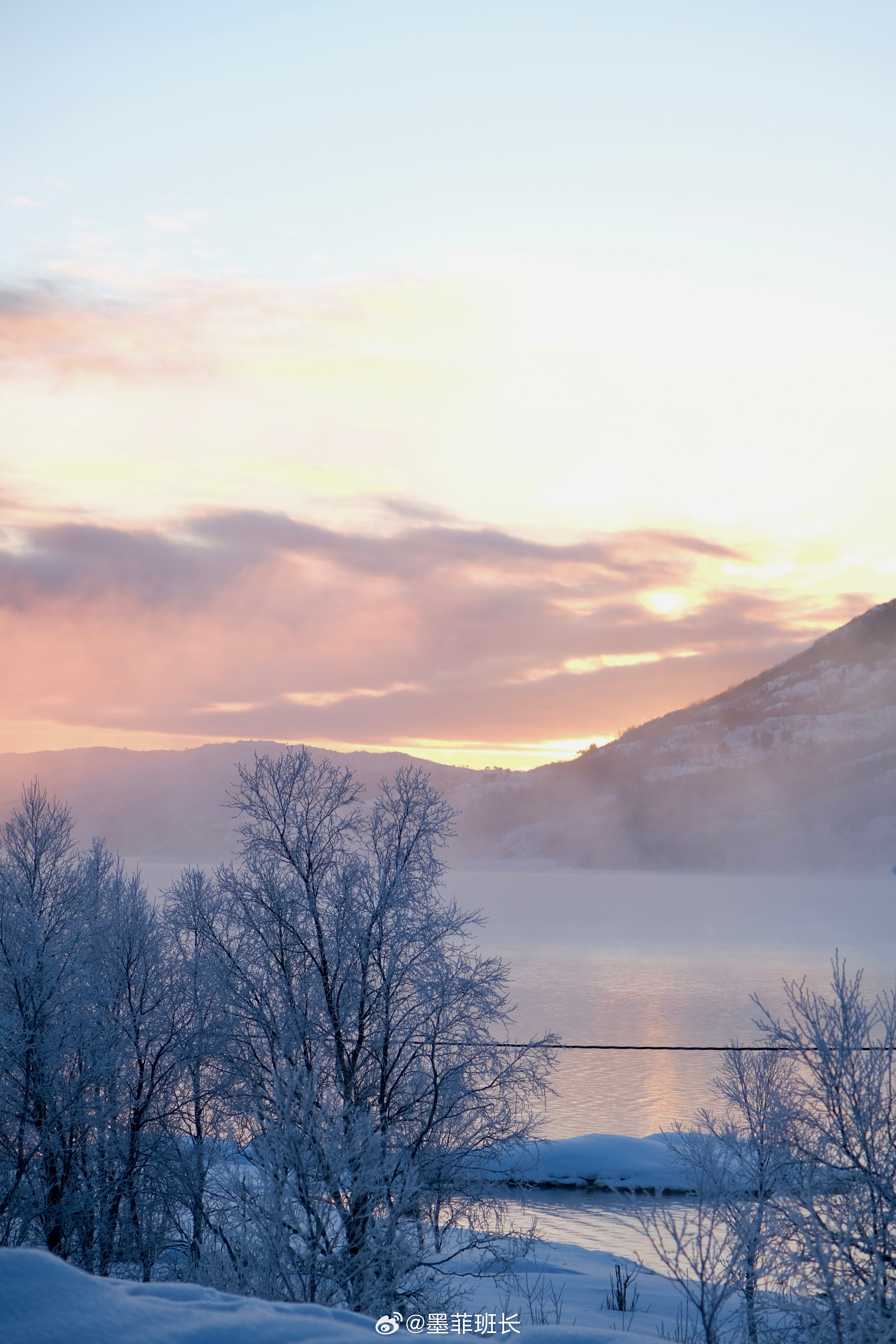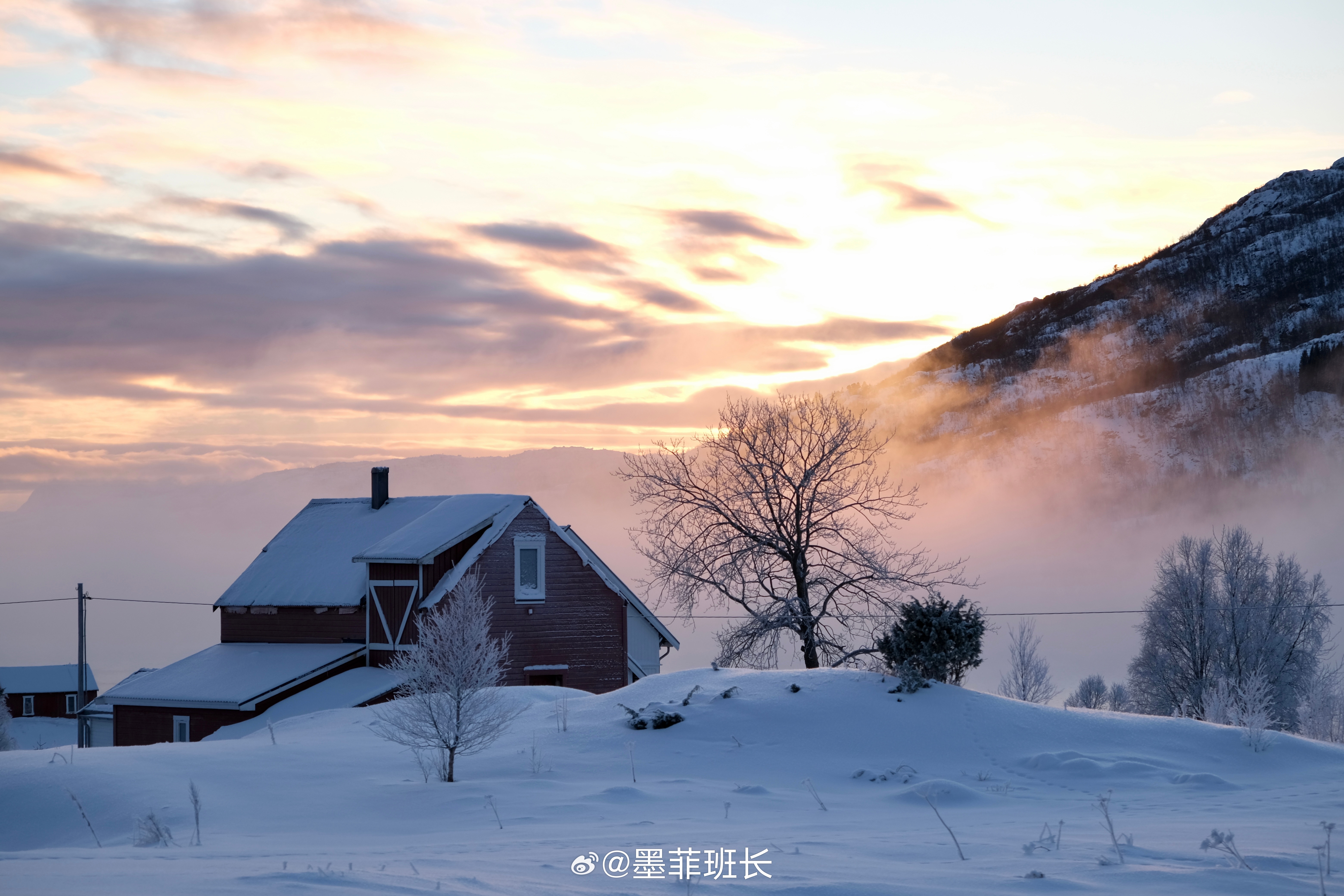 雪国之美啊❄️夕阳,雾气,雪松,人家,误入仙境的感觉🤍🤍坐车累了就随时可以下