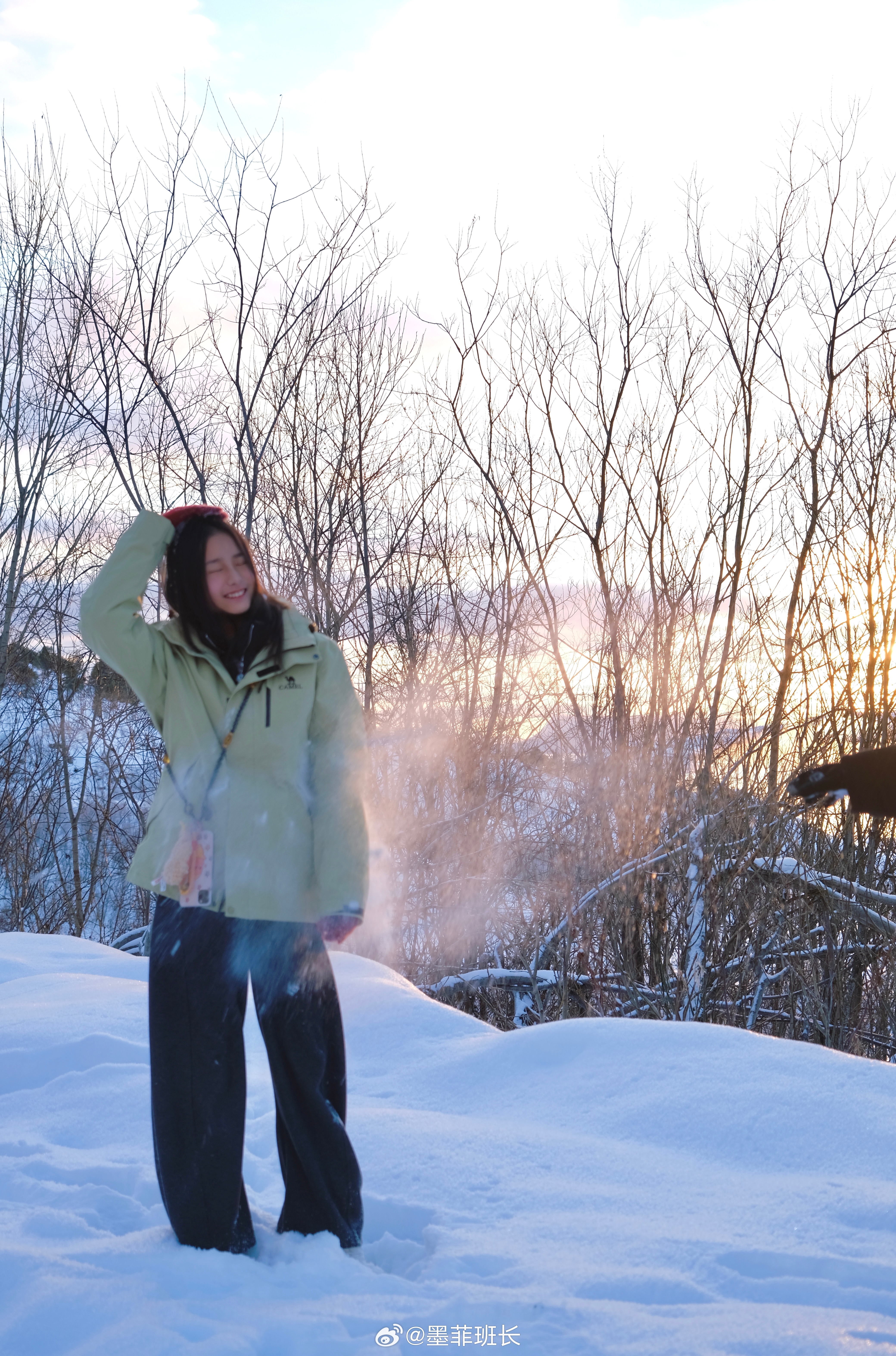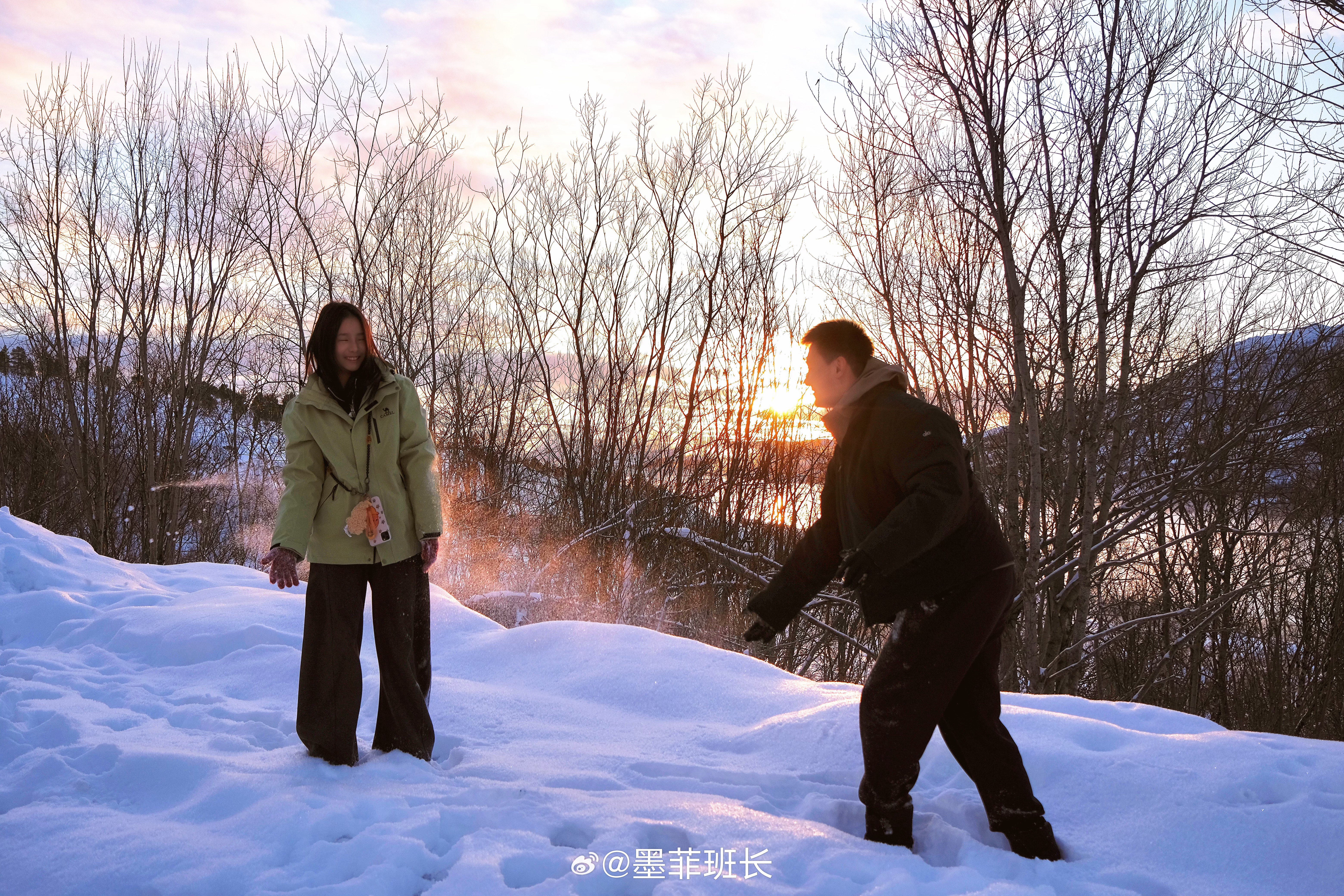 雪国之美啊❄️夕阳,雾气,雪松,人家,误入仙境的感觉🤍🤍坐车累了就随时可以下来打个雪仗⛄️