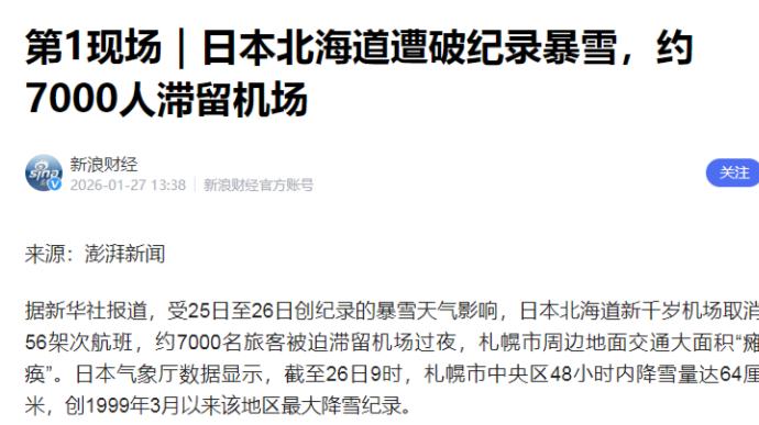 17死249伤!屡劝不听,滞留北海道旅客喊话祖国包机接人! 2026年1月25日开始,北海道突然下起疯了一样的大雪,短短两天,札幌市区就堆了65厘米厚,有些地方积雪直奔1米多高。 说白了,这就是一群成年人拎不清,把祖国的反复提醒当耳旁风,闯祸后又想靠道德绑架要包机,忘了自己该为所有选择买单的闹剧。 2026年1月25号那雪,是真的疯了,不是我们平时见的小雪花,是跟倒下来似的,刮着大风往脸上拍。 短短两天札幌市区积雪就堆到了65厘米,脚踩进去直接没到小腿肚,偏远点的地方积雪直奔一米多,车子被埋得只剩个车顶,房子顶都快被压塌,走在路上都怕被突然滑下来的积雪埋了。 这场暴雪有多狠?官方数据摆着,17人遇难,249人受伤,有的是清雪时坠楼,有的是被积雪掩埋,连医院急诊室都挤爆了,全是骨折和冻伤的人。 可能有人会说,天灾难防,可这事真怪不得天灾,怪就怪有些人太把自己当回事,太不把国家的提醒当回事。 早在2025年11月,驻日使领馆就开始发安全提醒,说北海道冬季暴雪高发,让大家审慎出行,12月又接着催,到了2026年1月,直接拉响红色警报,明明白白说“暂勿前往”,甚至连航空公司都跟着出了免费退改政策,就差把“危险”两个字贴在每个人脸上了。 可有些人呢?左耳进右耳出,觉得国家太夸张,觉得“哪有那么倒霉”,还有人专门绕路从韩国转机过去,就为了去拍个雪景发朋友圈,炫耀自己的“勇气”。 这些人,个个都是成年人,又不是痴呆的巨婴,连基本的风险判断都没有吗? 知道北海道冬季多暴雪,知道红色警报意味着什么,却偏偏要赌一把,觉得危险不会落到自己头上。 结果呢?暴雪一到,新千岁机场几百架次航班取消,七千多人滞留,便利店货架被抢空,一杯热饮要抢半天,酒店房价翻好几倍,连出租车都坐不起,有的游客在机场席地而坐,裹着薄毛毯冻得瑟瑟发抖,手机没电没信号,连家人都联系不上。 这时候,他们终于想起自己是中国人了,终于想起祖国了,拿着手机对着镜头喊话,让祖国派包机接他们回家,甚至有人理直气壮说“我交了税,祖国就该管我”。 拜托,祖国不是无限责任公司,也不是你们的私人保镖,凭什么要为你们的任性买单?不要拿道德绑架政府,国家提醒过你无数次,是你自己不听劝,现在出了问题,凭什么要让全体纳税人的钱,为你的侥幸心理兜底? 有人说被困太可怜,可可怜之人必有可恨之处,与其在网上哭哭啼啼求救,不如静下心来想想,当初要是听了国家的话,现在是不是早就舒舒服服在家待着了? 退一步说,既然敢冒着生命危险去,就得有承担后果的勇气,不管死活,都是你自己选的经历,对人生也算有点意义,至少能让你记住,不听劝的代价有多惨。 甚至有人调侃,与其浪费时间喊救,不如早点把后事、密码啥的交代清楚,反倒更靠谱点,这话听着扎心,但理不糙。 大家一定要记住,祖国从来不会放弃任何一个清醒明智、懂得敬畏风险的公民,可如果你把祖国的善意提醒置若罔闻,非要往火坑里跳,那对不起,祖国不会再为你开绿灯,不会给你派包机,你自己选的路,哪怕跪着也要走完,那里就是你自己选的归宿。 毕竟,只要心中记着祖国,无论埋在哪,都一样是华夏儿女,可要是心中没祖国,就算祖国把你接回去,你也学不会珍惜。 以上仅为个人看法,不代表任何立场,也没有评价任何人的意思,只是单纯解读这件事背后的道理。不知道大家怎么看?是觉得这些滞留旅客值得同情,还是觉得他们活该?欢迎在评论区说说你的想法。