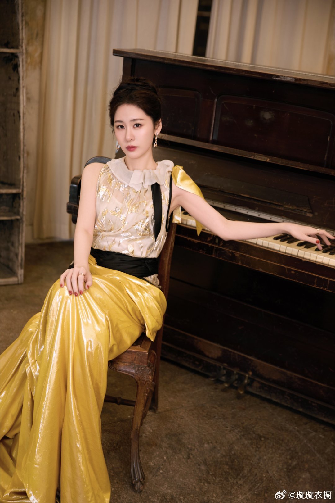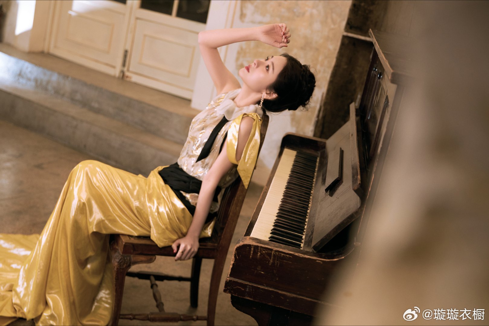 张碧晨鎏金裙摆垂落如凝固的月光,指尖轻叩琴键唤醒沉睡的时光。镜中蝶翼在绸缎上振翅