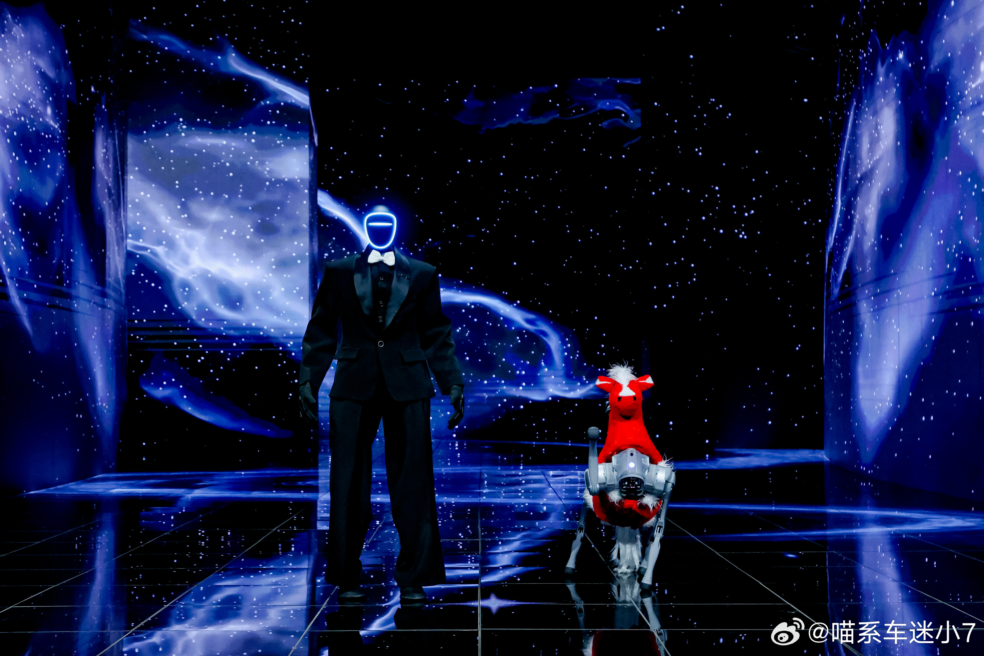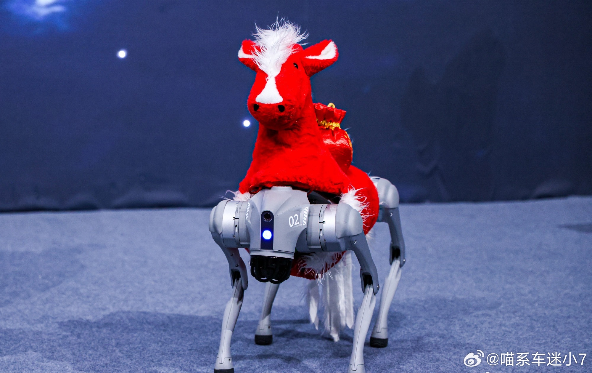 那只红毛机械小马更绝,毛绒绒对配上金属机械腿,反差感拉满,还能现场表演空翻,和十个勤天的舞台互动起来,科技不再是冰冷的装置,而是真的融入了表演。