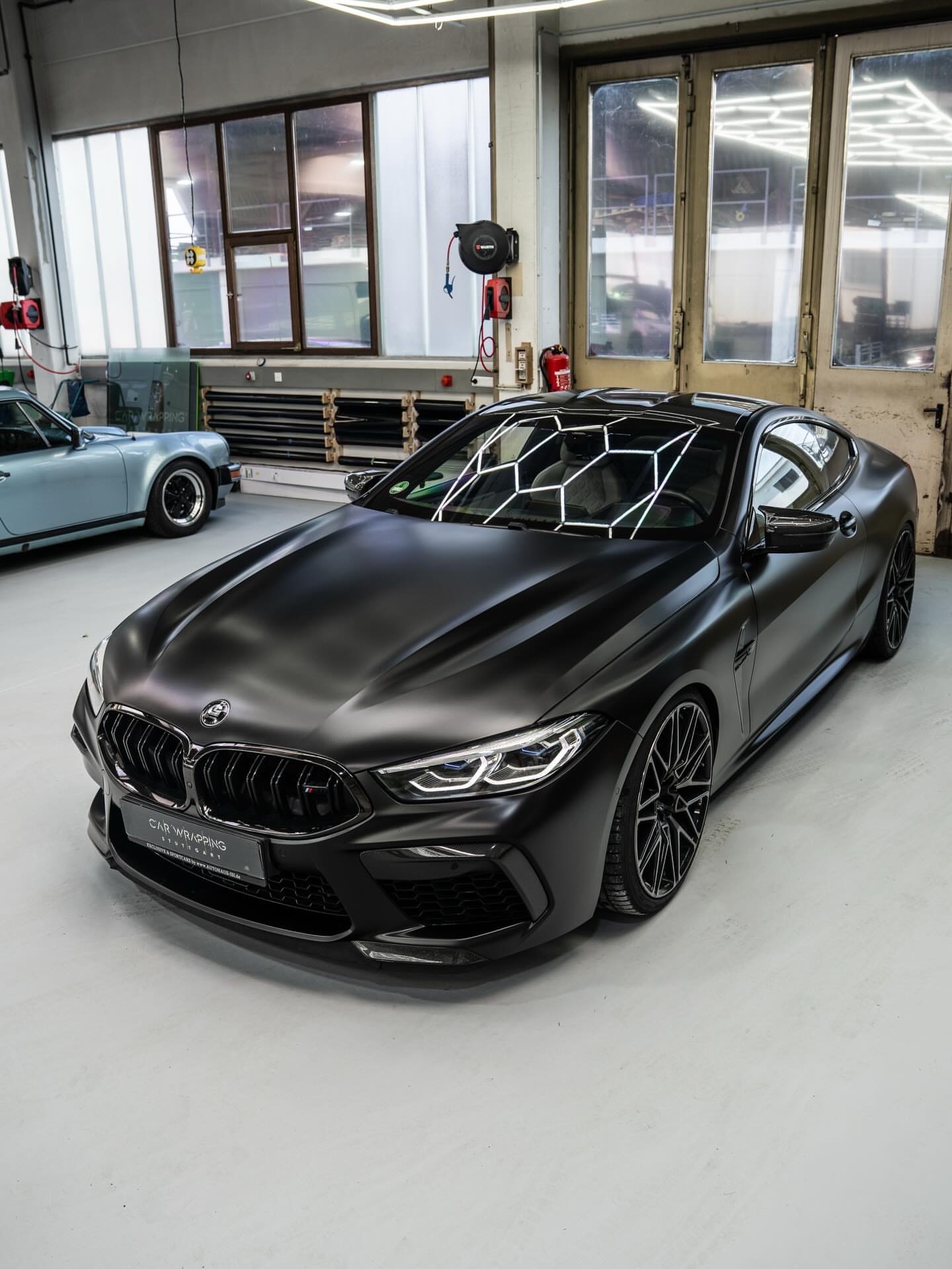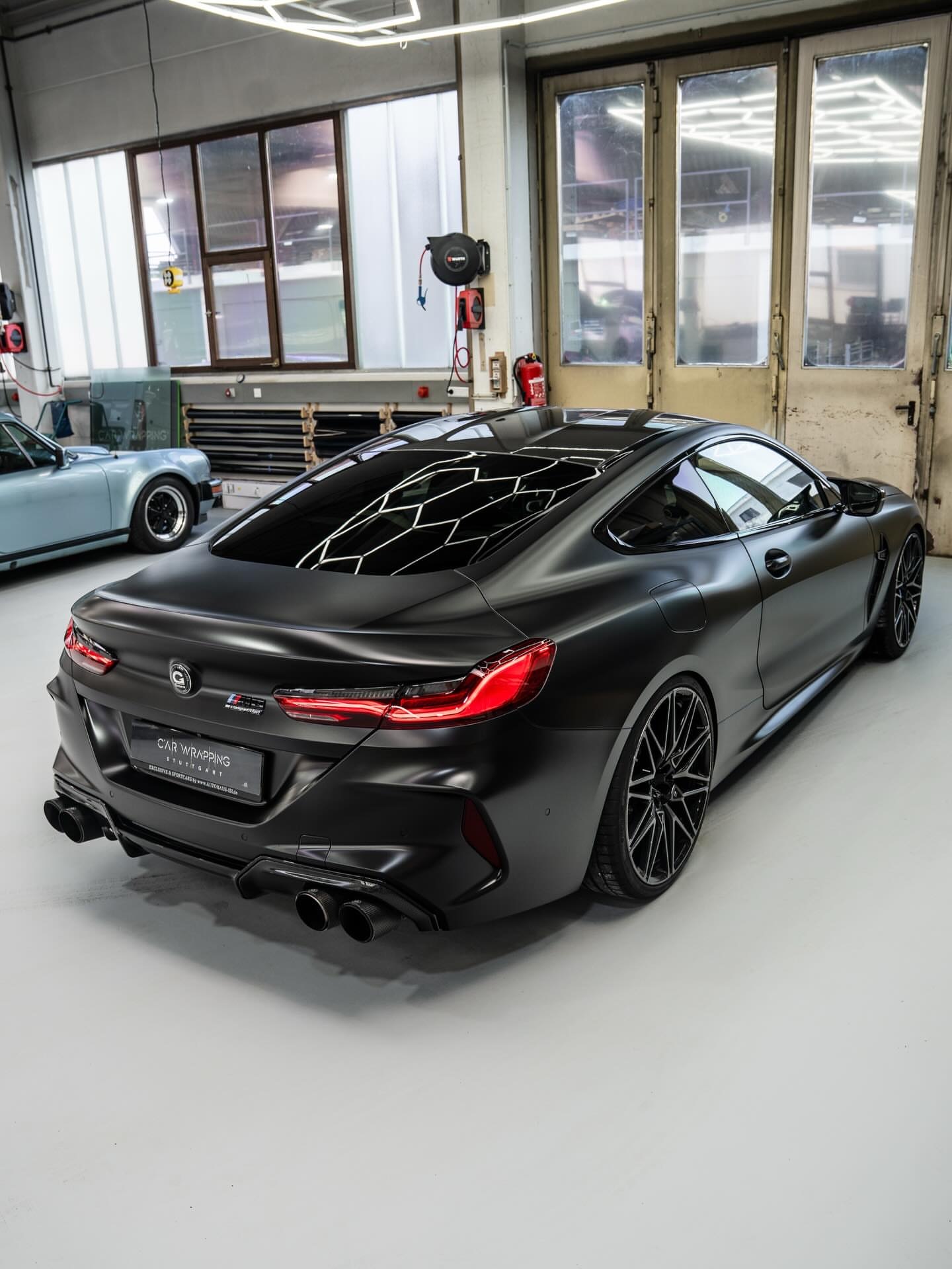 全车喷漆——宝马M8——亚光黑从红色到亚光黑。既不“大胆”,也不“高贵”。只是毫