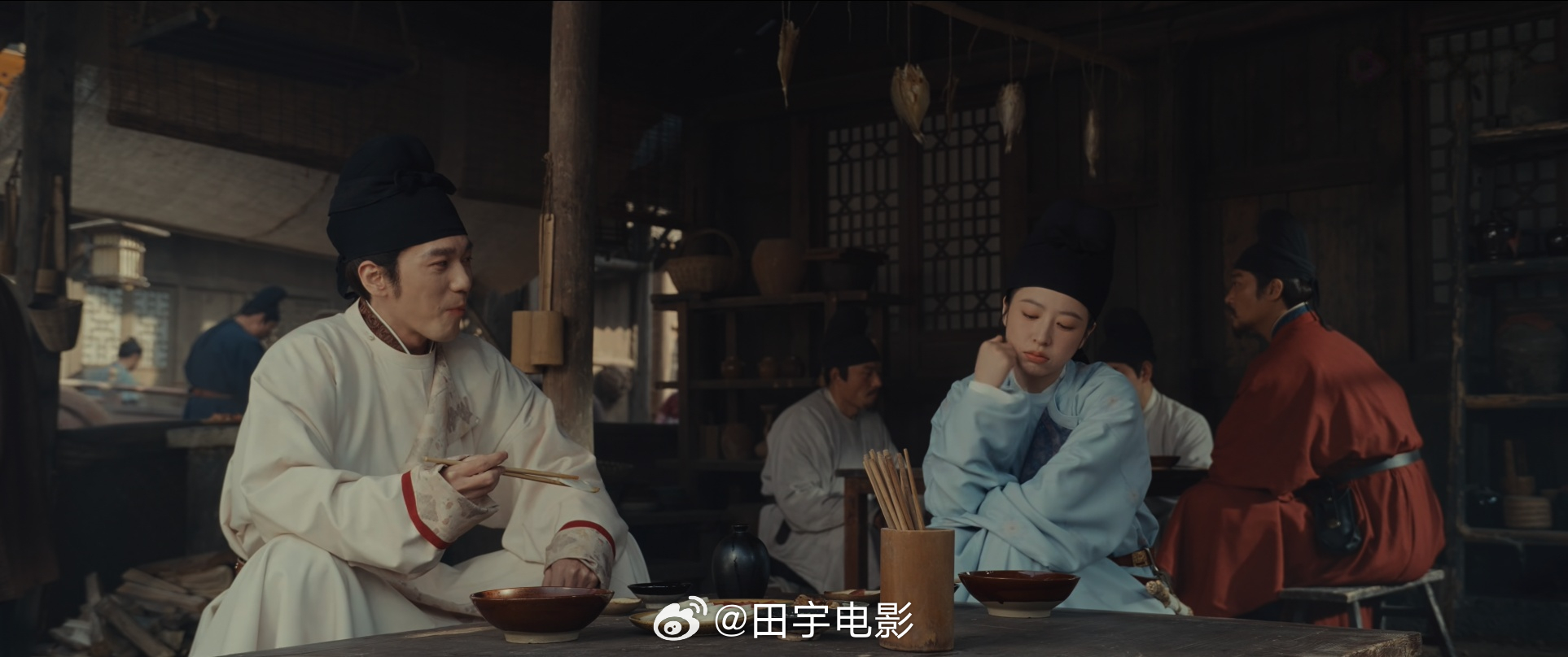 白宇对这个角色的处理,在于苦中作乐时的淡然,和孙太真的彼此依靠,在乱世之中显得更加弥足珍贵。放在和平年月,他俩就是对幸福撒糖的情侣,可这个设定放到战乱年代,就变成了灵魂信仰的交互,生与死的依偎与牵绊。所以当这种情感被具象化时,便超过了绝大多数的男女朋友关系。