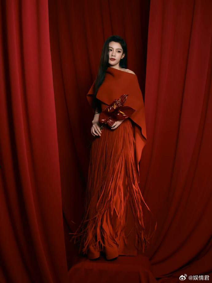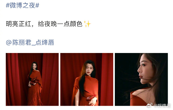 陈丽君给微博之夜一点颜色 陈丽君果然是氛围感高手,给微博之夜一点颜色,一身红袍明