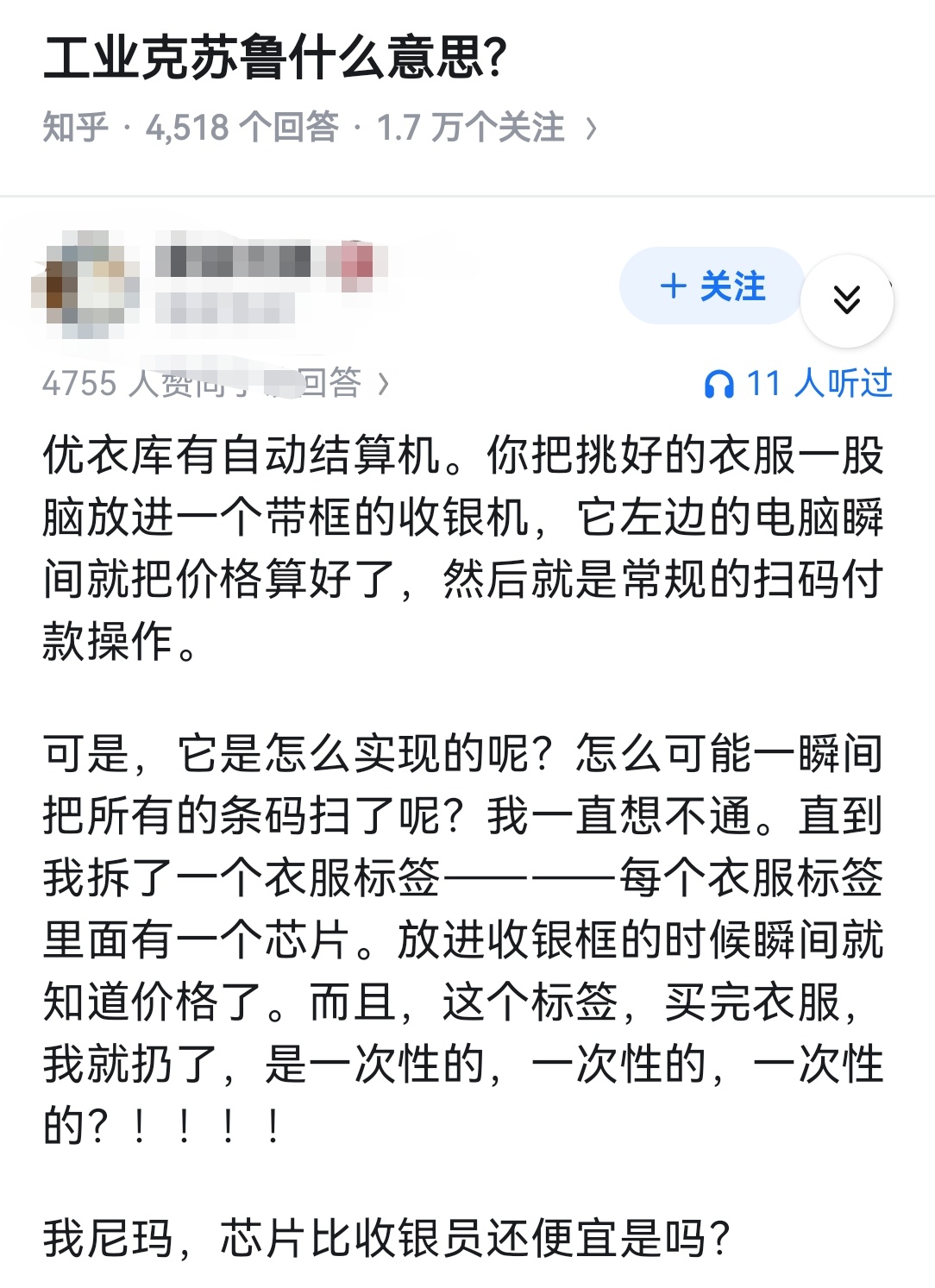 这怎么叫一次性呢,这个小芯片负责制造溯源,带品控物流以及货品管理功能,你拿去结账只是这个几分钱的芯片完成了最后一个任务而已