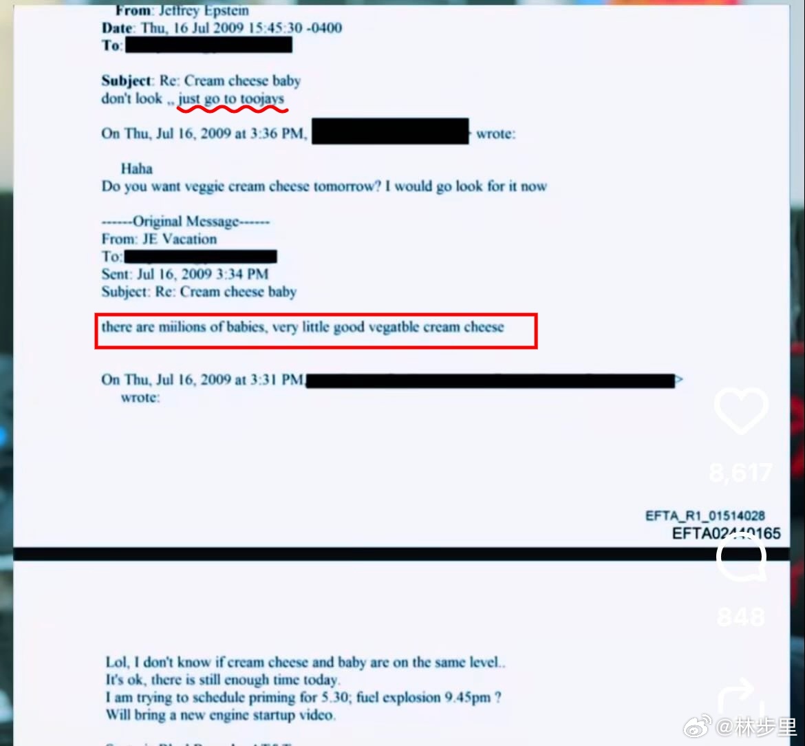 爱泼斯坦档案中,又一封暴露出吃小孩的邮件。