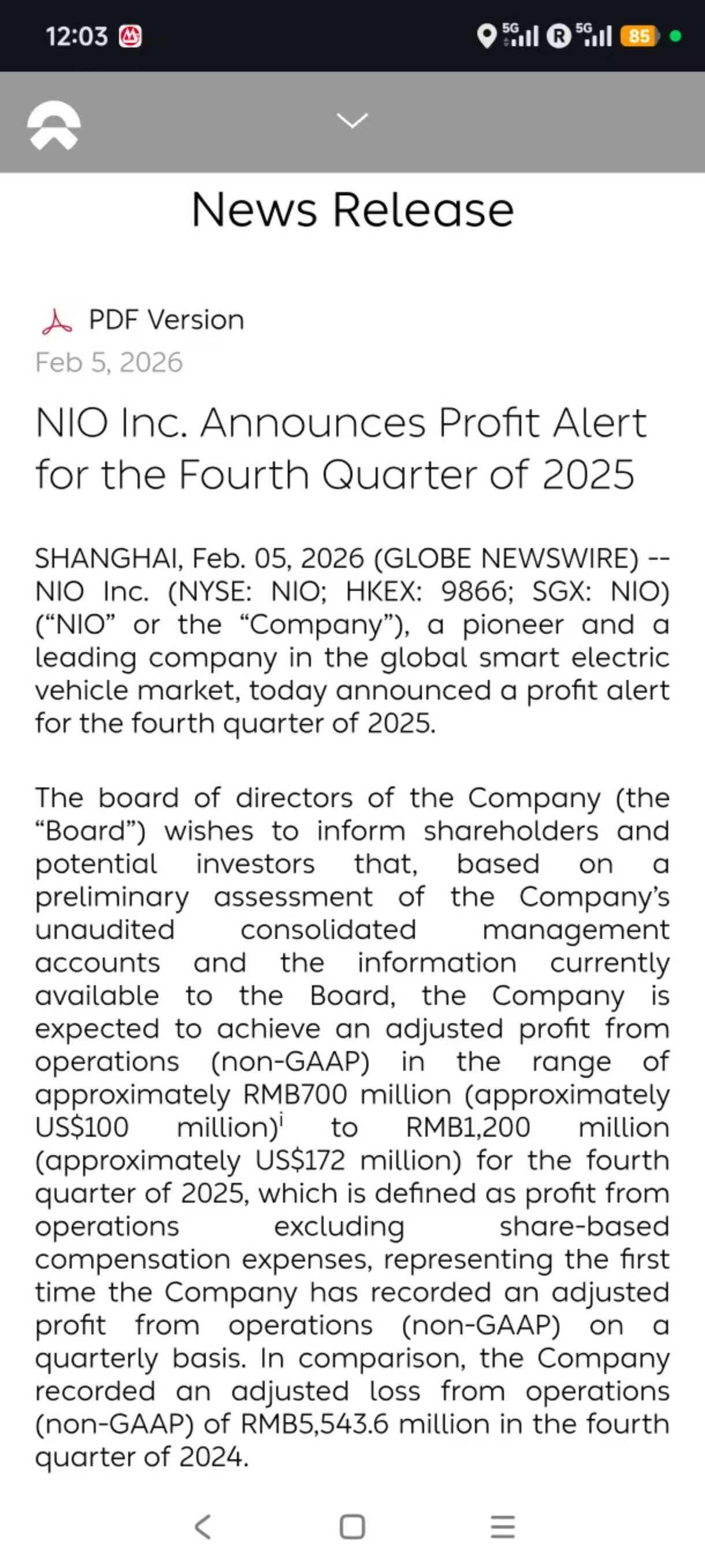 蔚来实现季度盈利 蔚来预告2025 四季度蔚来首次盈利,ES8 应该是最大的功臣,不知道 26 年盈利能不能成为常态。