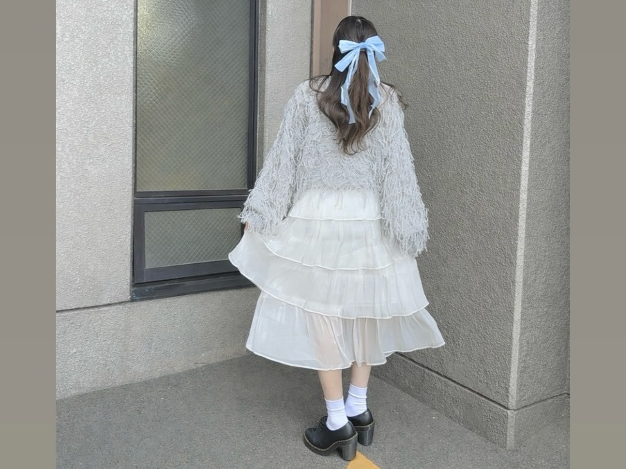 吉田綾乃クリスティー「⛩👗遅ればせながら京都でのリアミのおよふくです。🩵🩶🤍頭のリボンはメイクさんが貸してくれました🎀カラコン👀azatome:ラグドール」