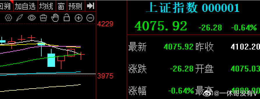 自从被领导降温后,赶上黄金白银的暴涨暴跌,让大A一下子就焉了,今天没有延续昨天的向上,外围大跌等,永远做一个跟随者,主动低开27个点,随后银行等大块头护盘,向上反弹乏力后下来了,4048点,午后券商再次崛起,一度拉起,华林证券涨停等,但还是没有伶俐的上涨,尾盘回落,4075点收盘一根缩量十字星,勉强在5日30日线徘徊,30日线得失是关键点