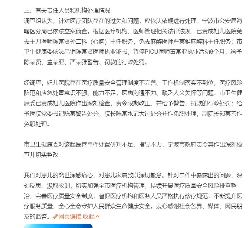 涉事主刀医师被吊销执业证,医院院长、副院长等多名负责人被免职。