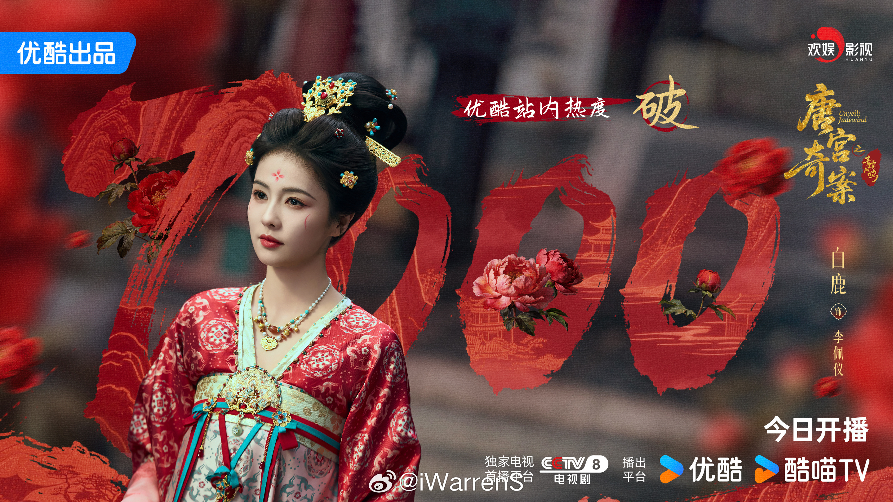 白鹿带着李佩仪参加微博之夜了!目前白鹿新剧唐宫奇案优酷热度破7000啦!该剧还未