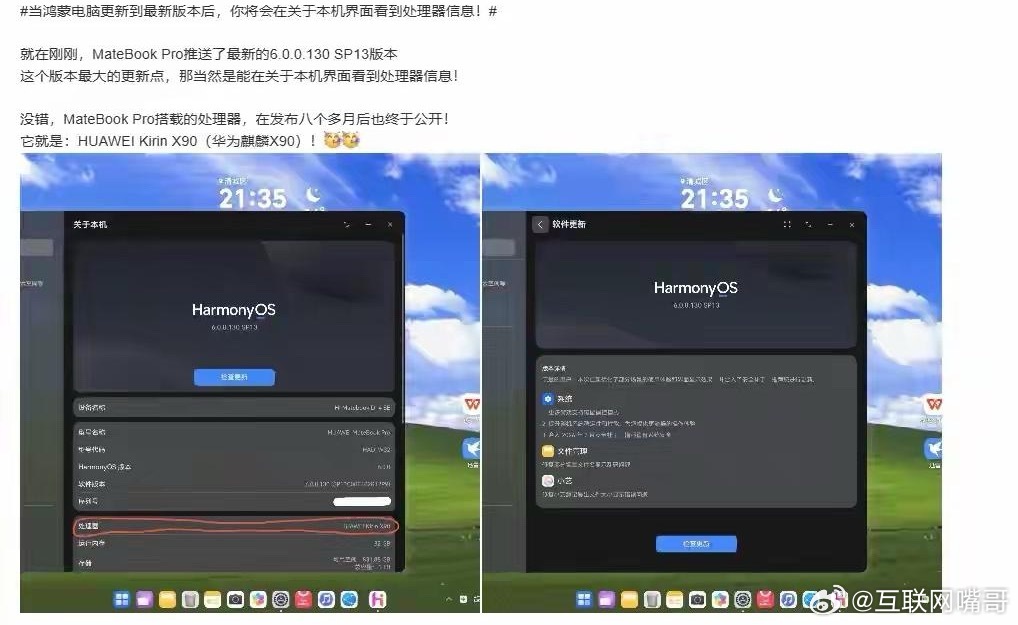 上面显示的就是:HUAWEIKirin X90,因此鸿蒙这款电脑已经告诉了我们,鸿蒙越来越强了,现在电脑都直接给大家显示处理器信息。侧面也证明了我们处理器真正掌握国产产业链的能力!