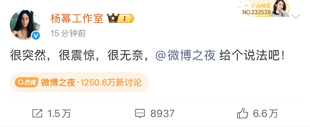 红毯有啥好看的,微博之夜真正的精彩的是上不了热搜的!杨幂工作室开撕微博了,找微博