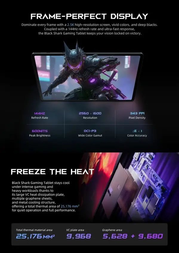 据外媒报道,黑鲨游戏平板已在官网上现身,并公布了全部核心规格与功能参数,预示着这款平板即将在全球正式开售。
